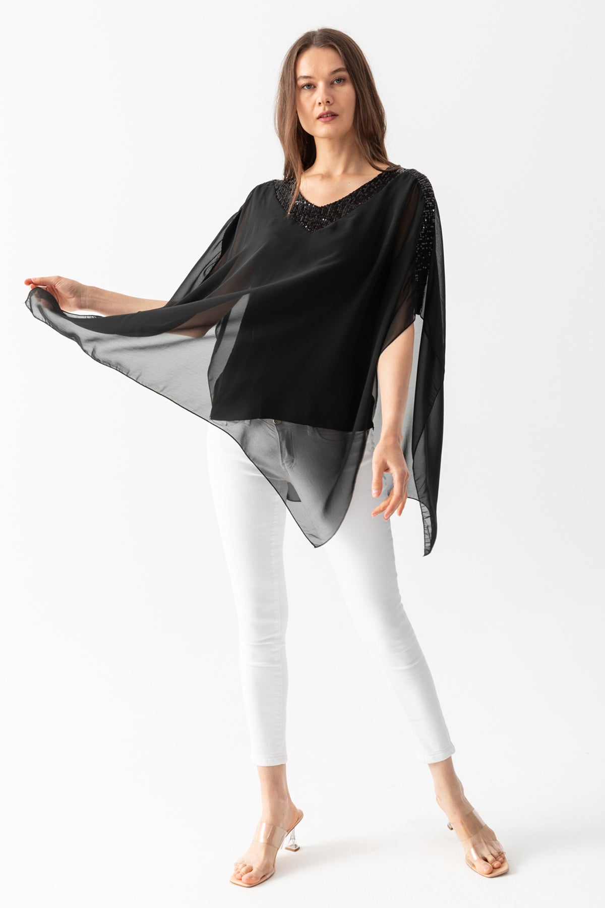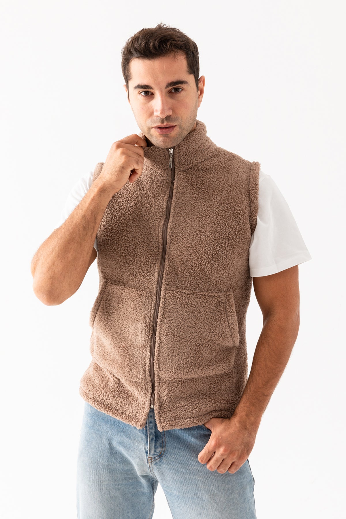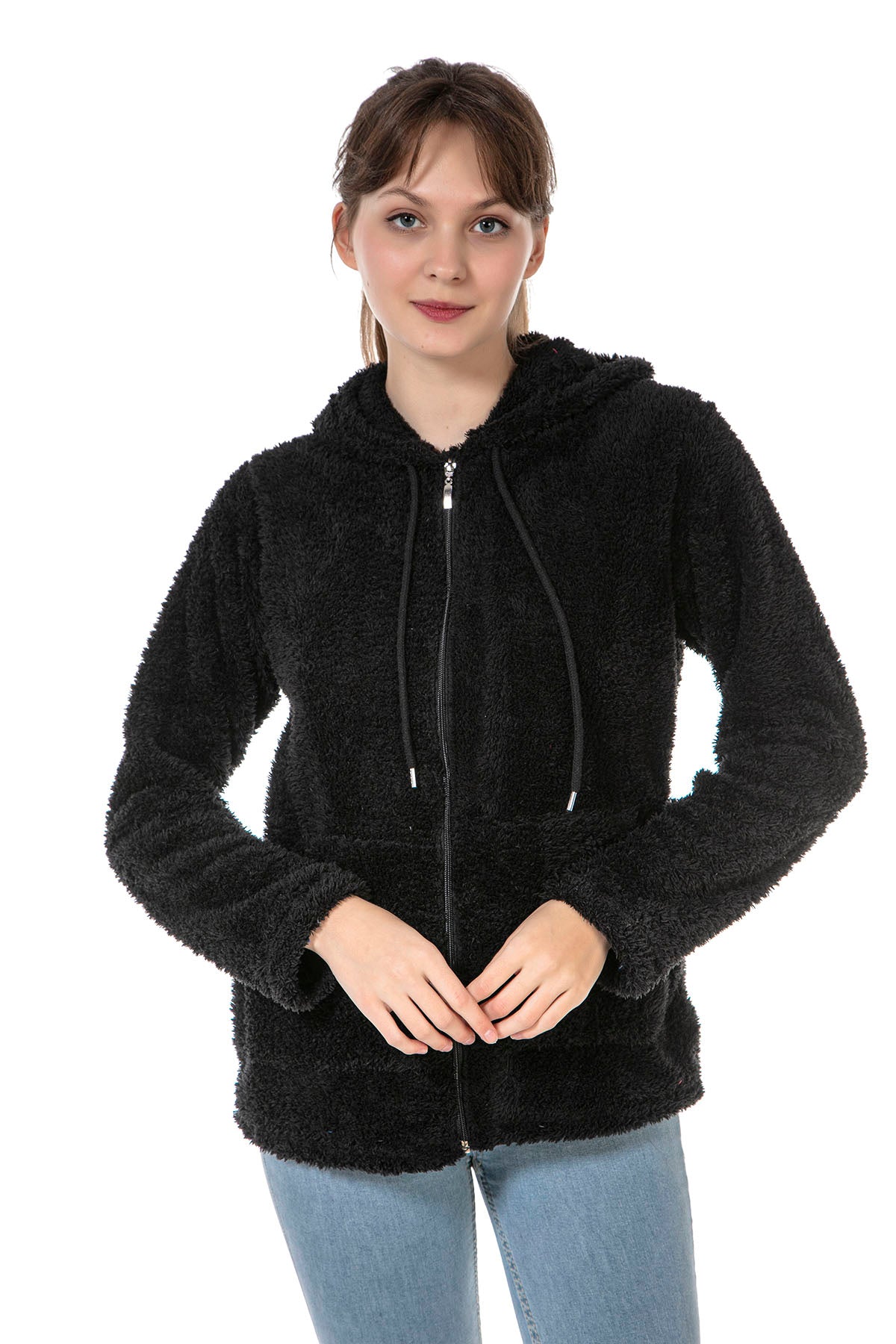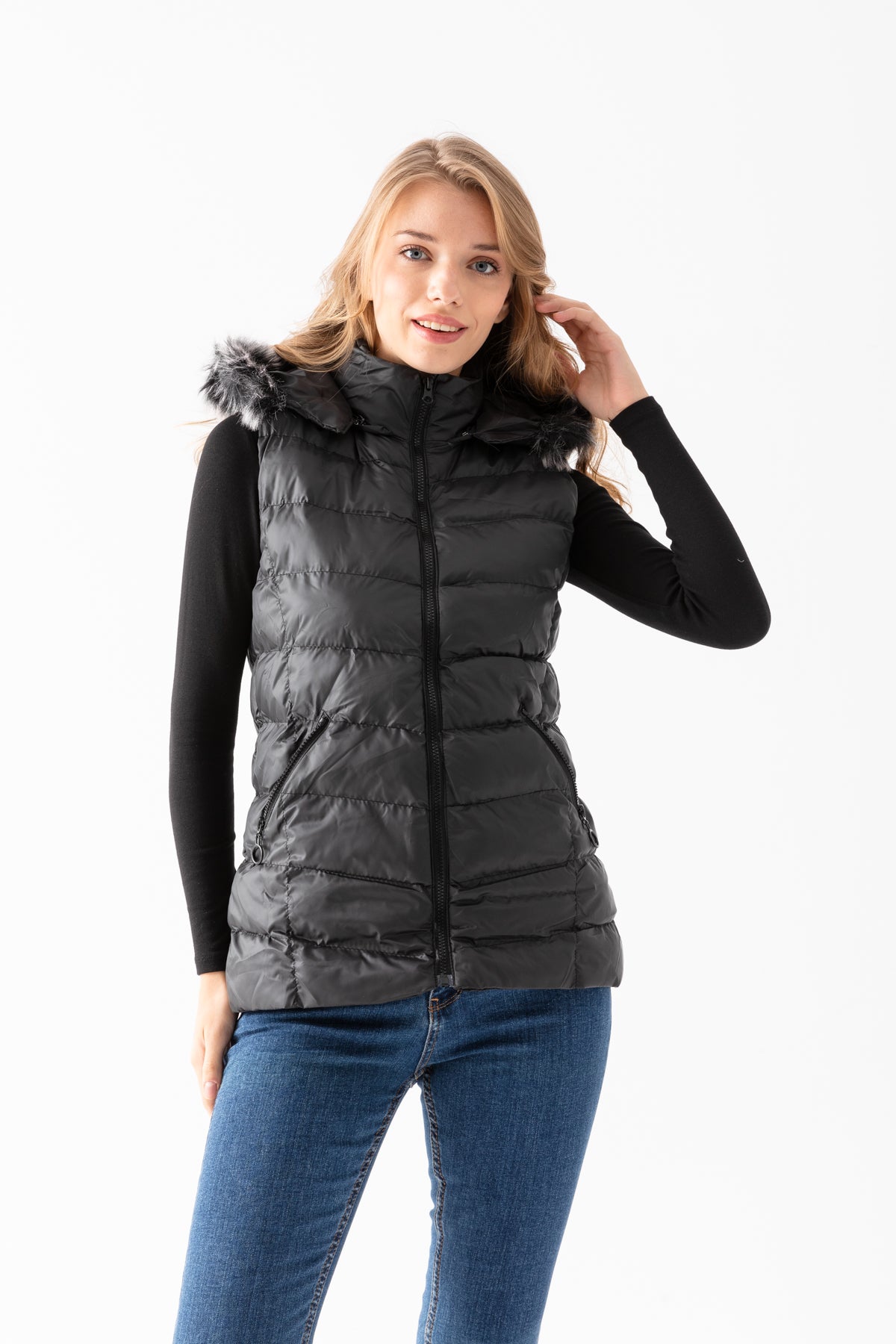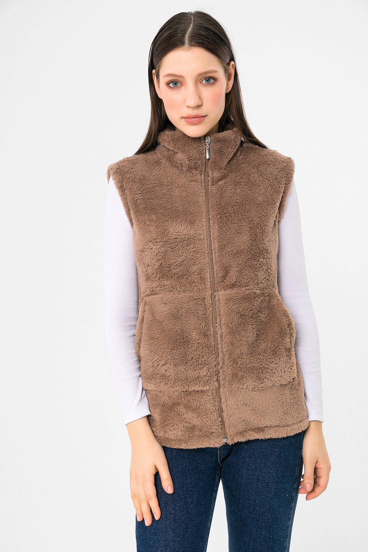 Kadın Siyah Kapşonlu Kolsuz Peluş Yelek