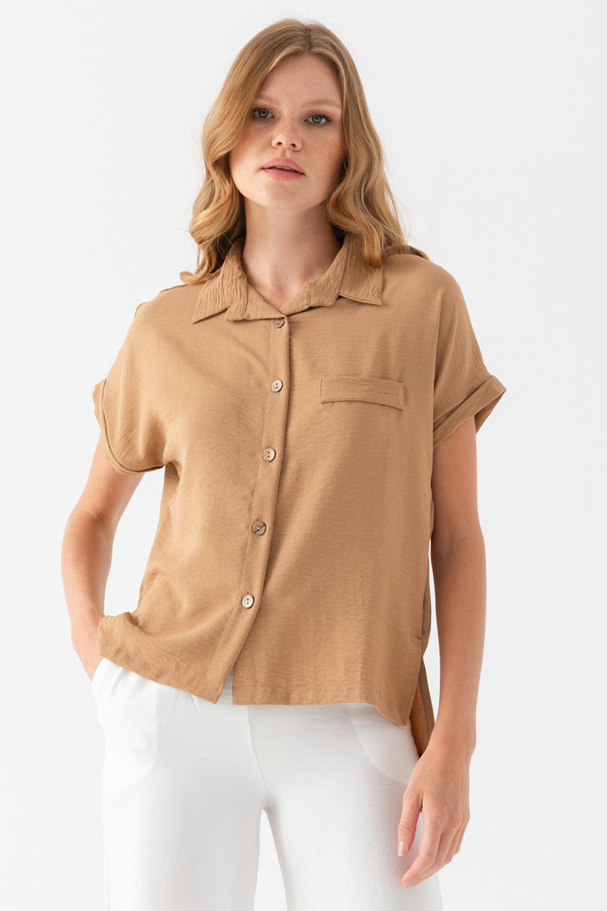 Kadın Ekru Uzun Kollu Kopüşonlu Astarsız Peluş Ceket
