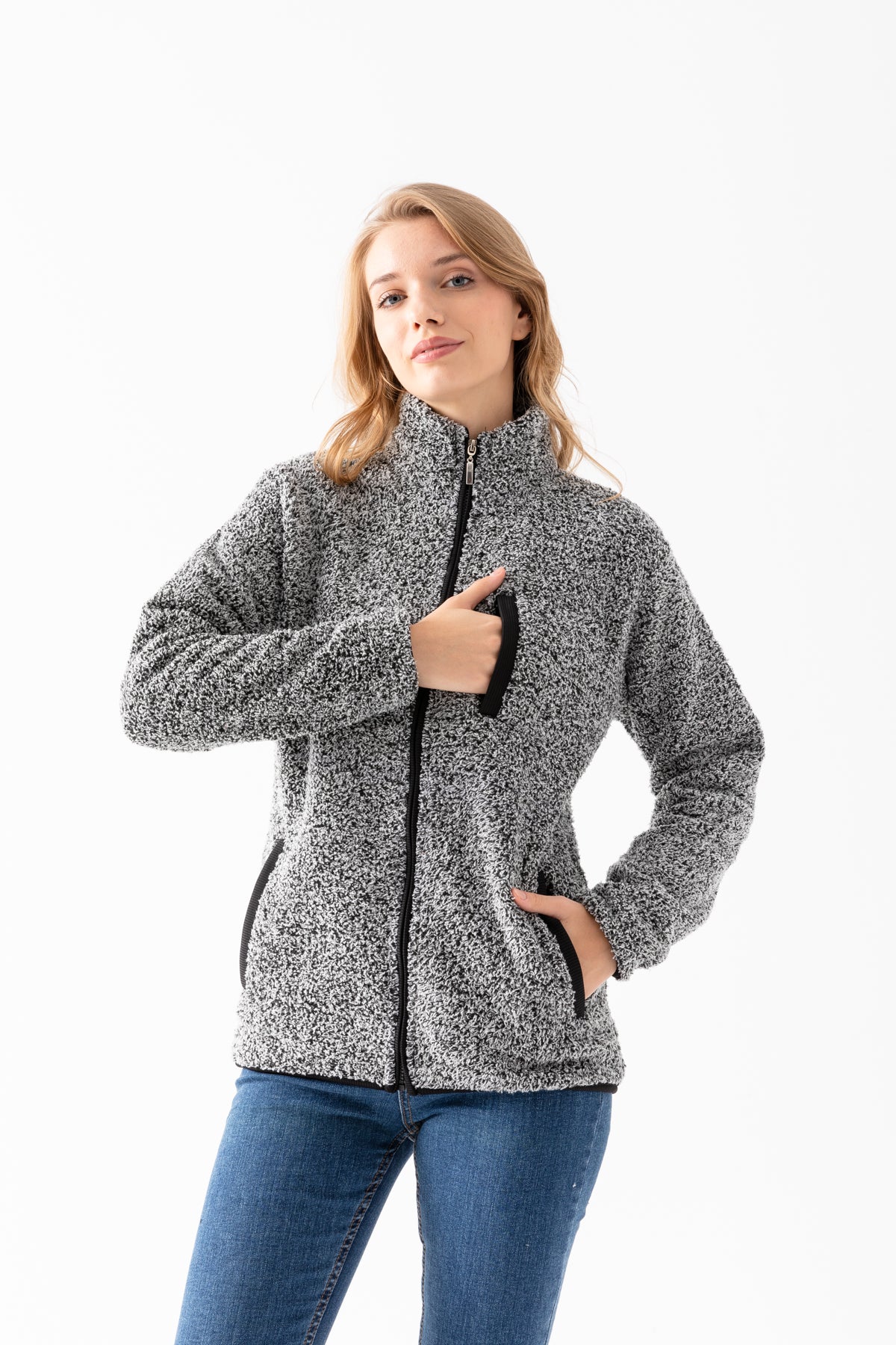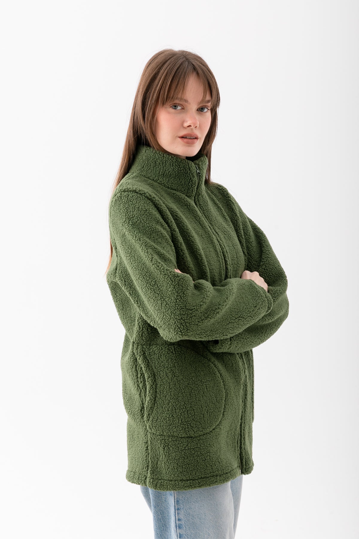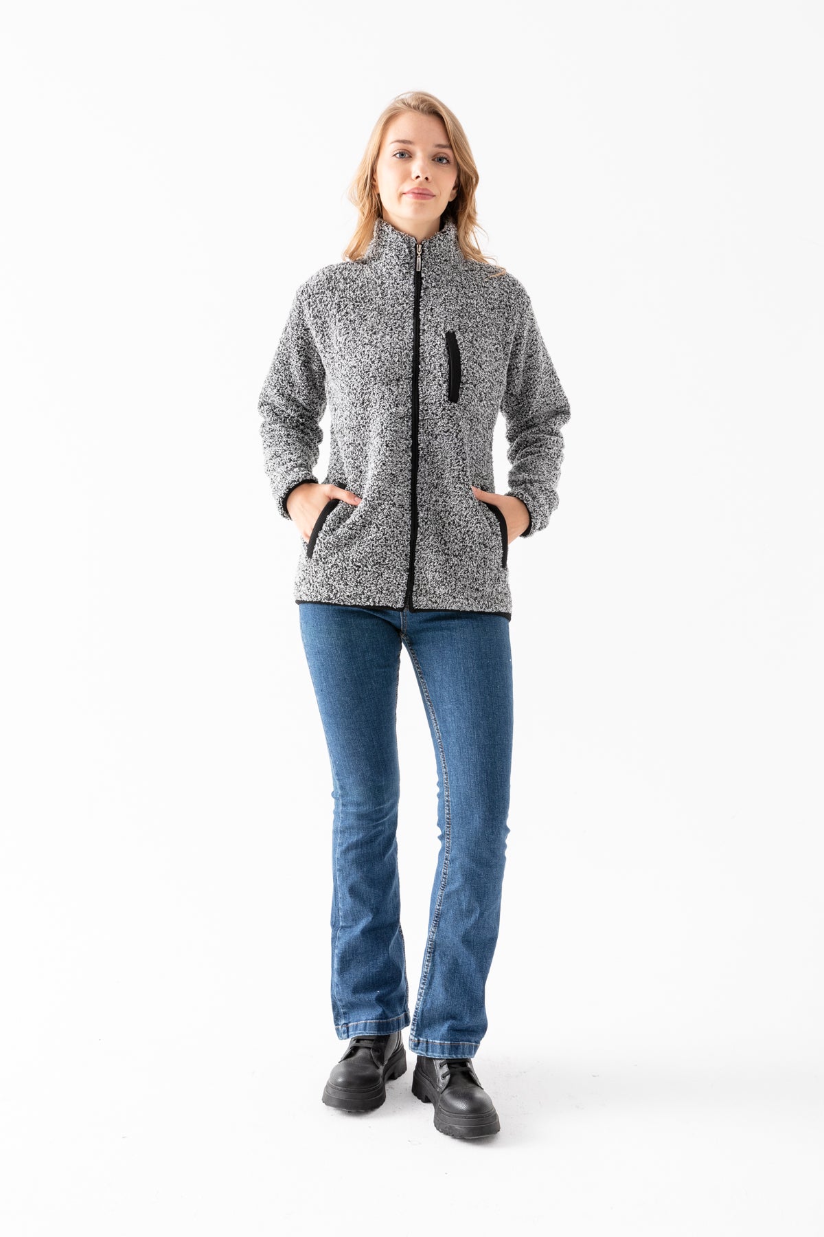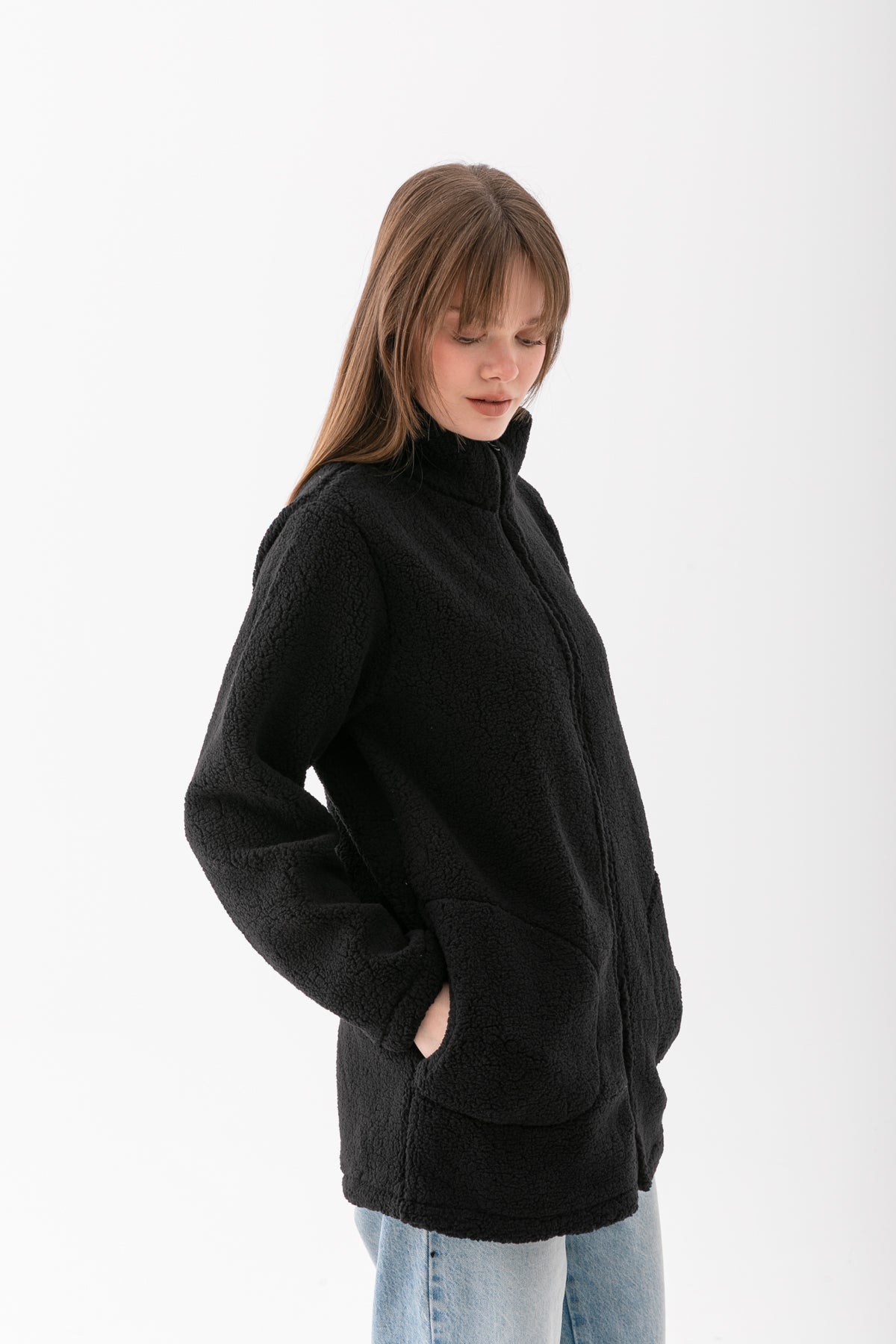 Kadın Kırçıllı Gri Kapüşonlu Peluş Ceket