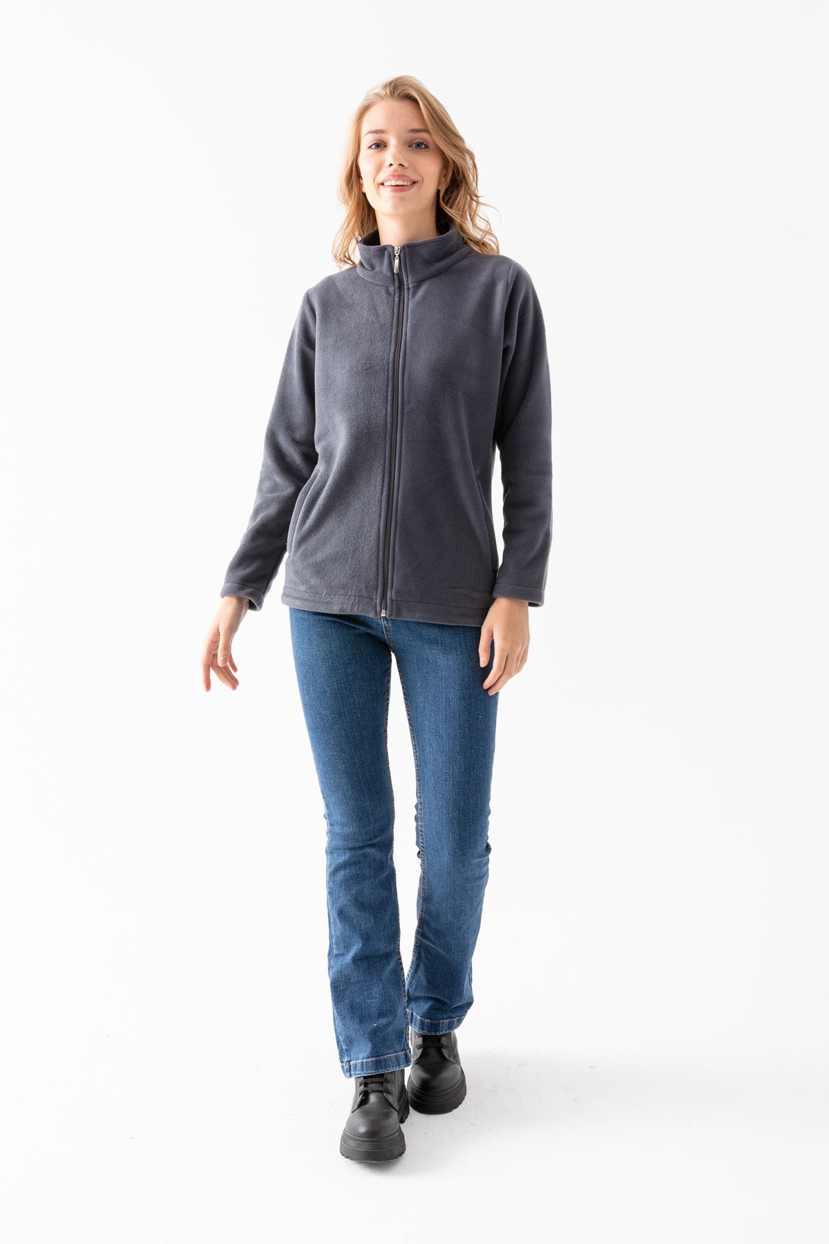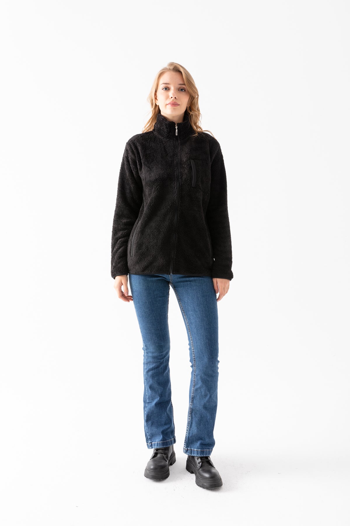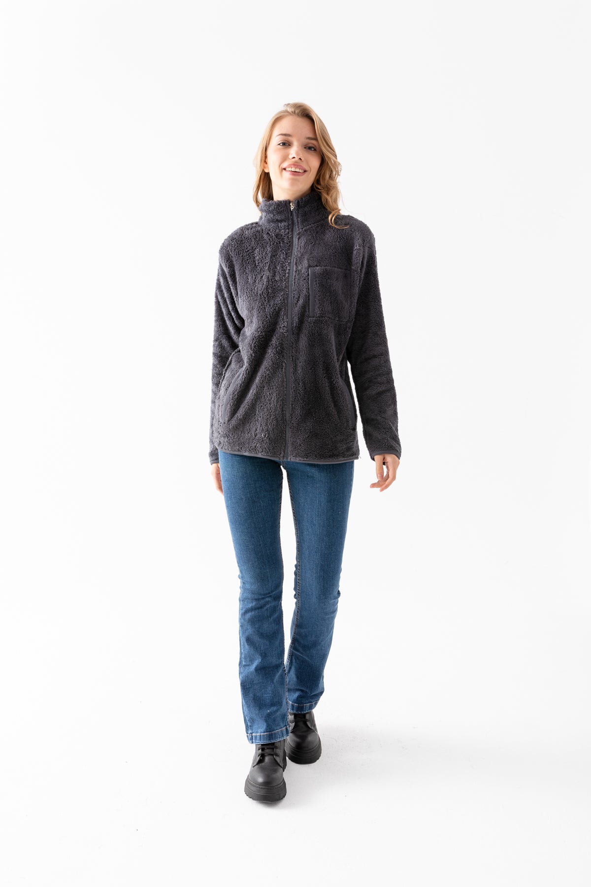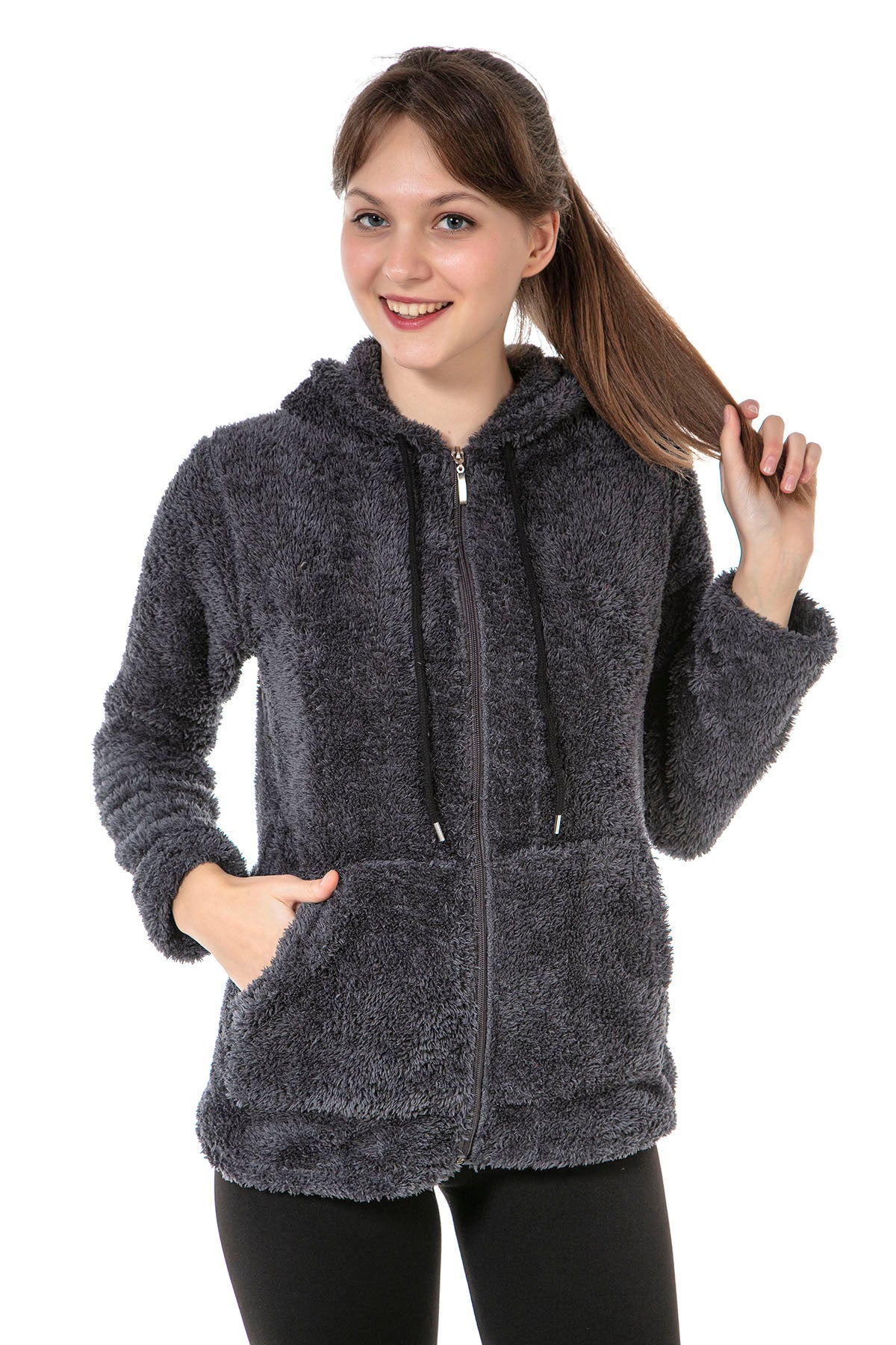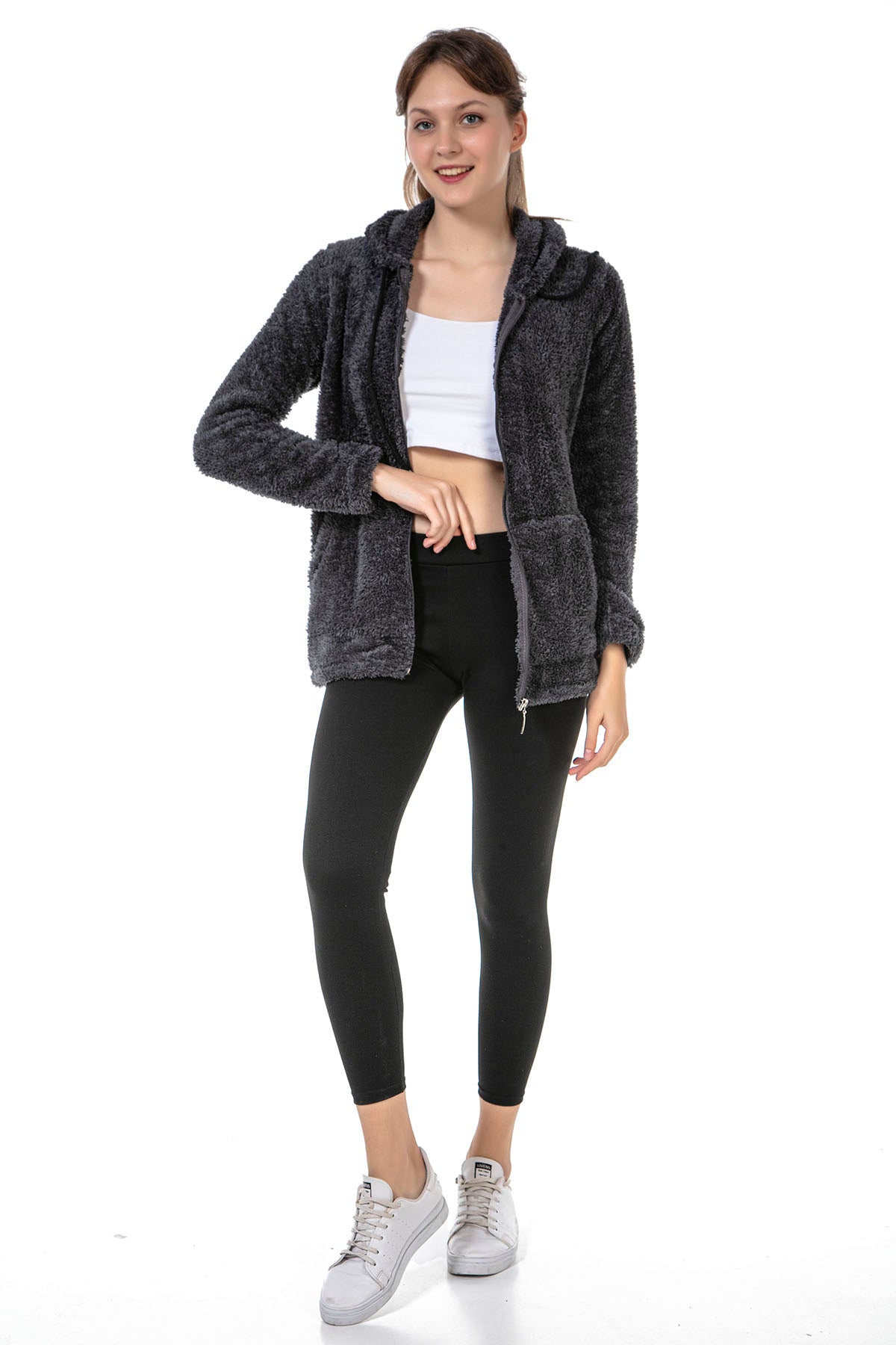 Kadın Antrasit Uzun Kollu Kopüşonlu Peluş Ceket