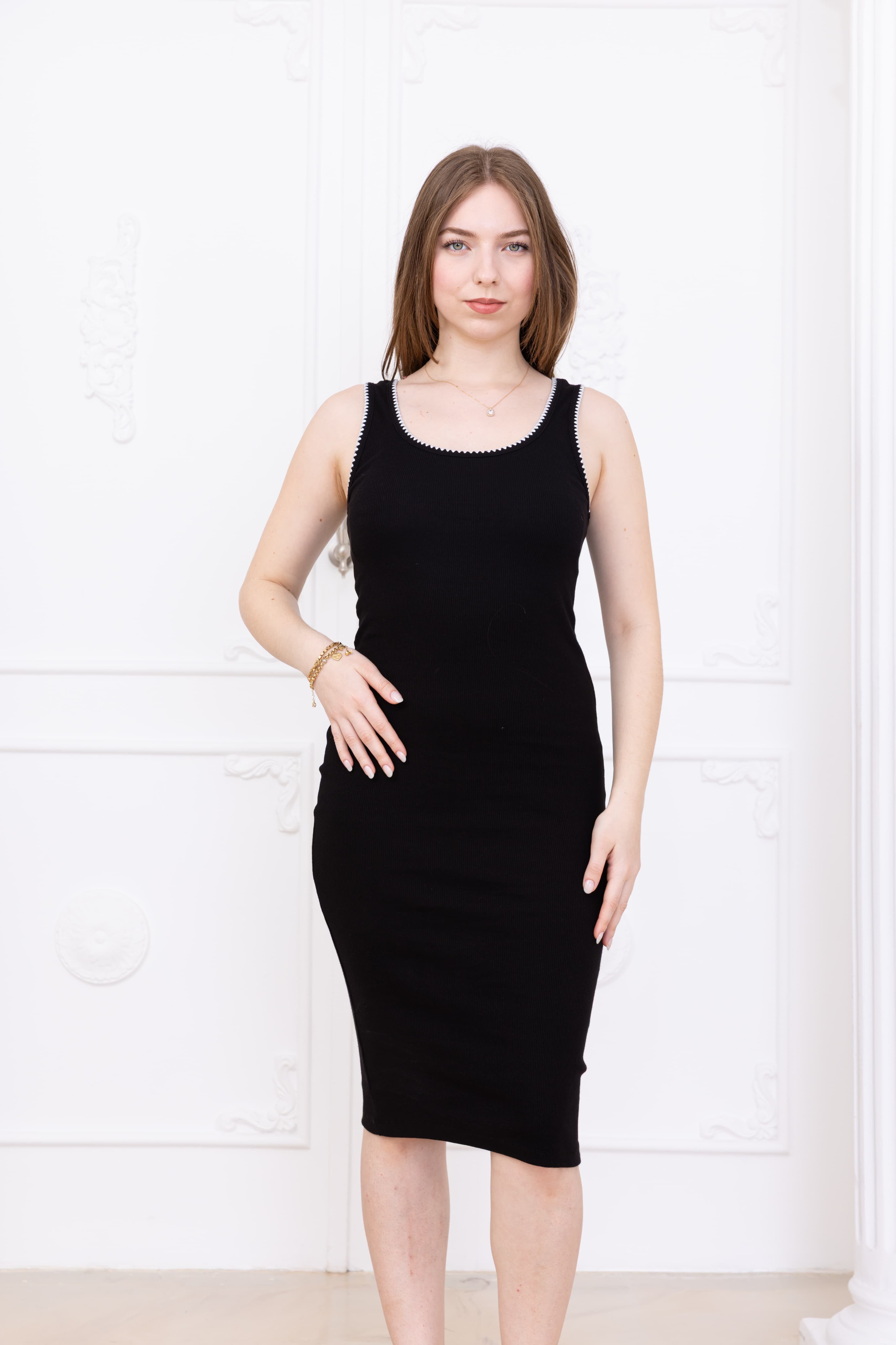 Kadın Siyah Nakış Biyeli Crop Elbise