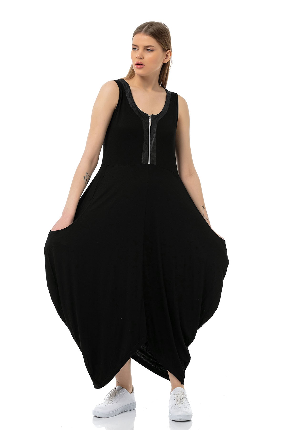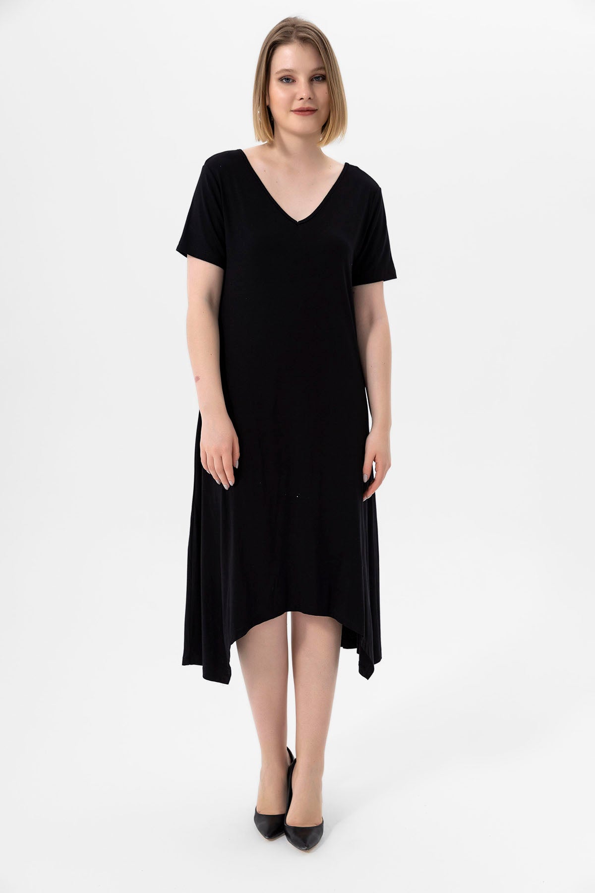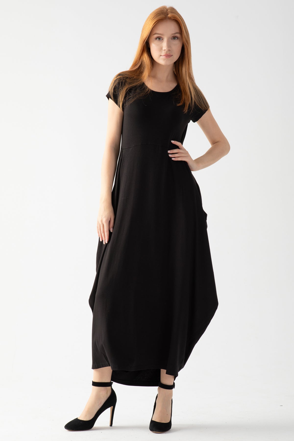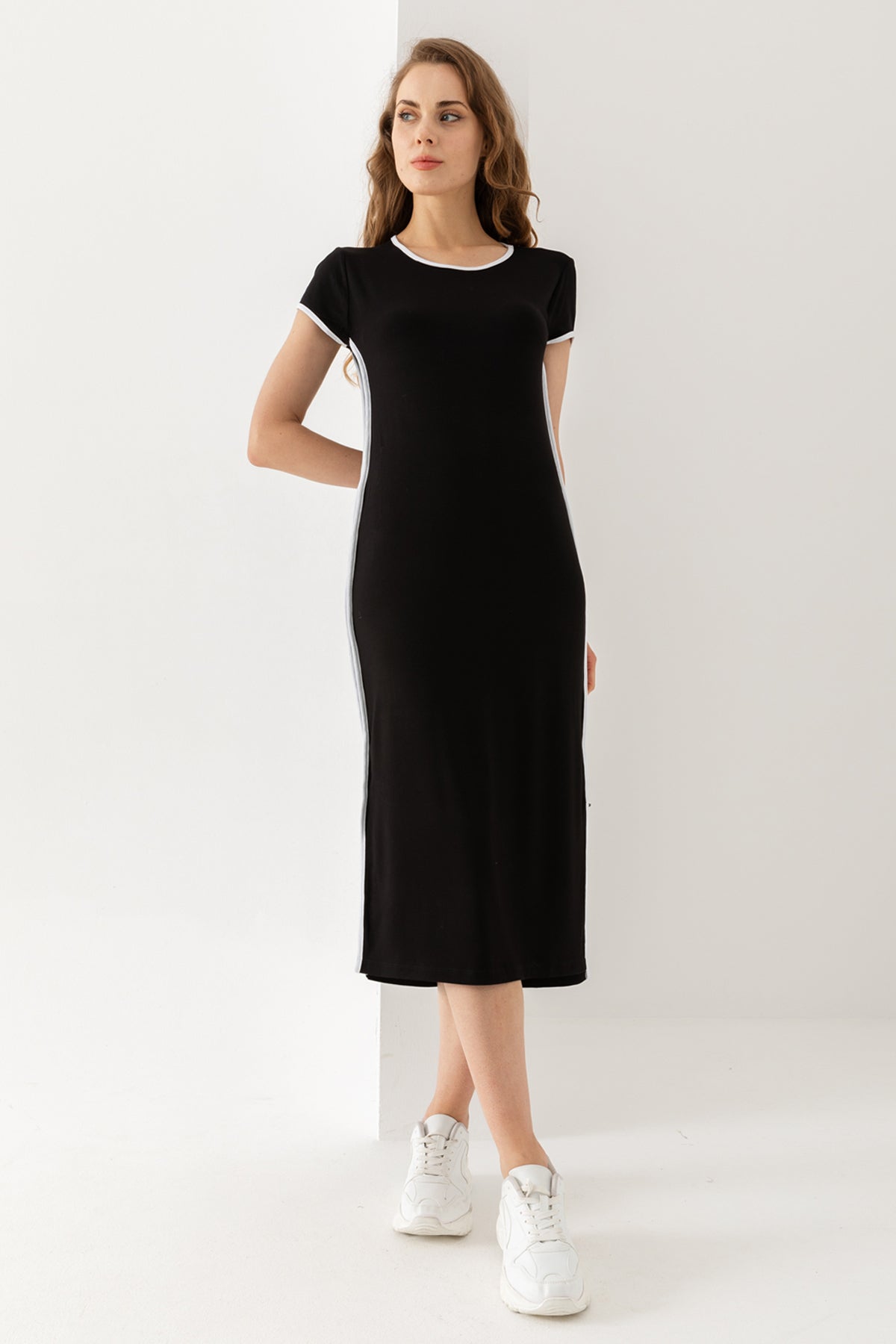 Kadın Siyah Bebe Kol Viskon Penye Şalvar Elbise