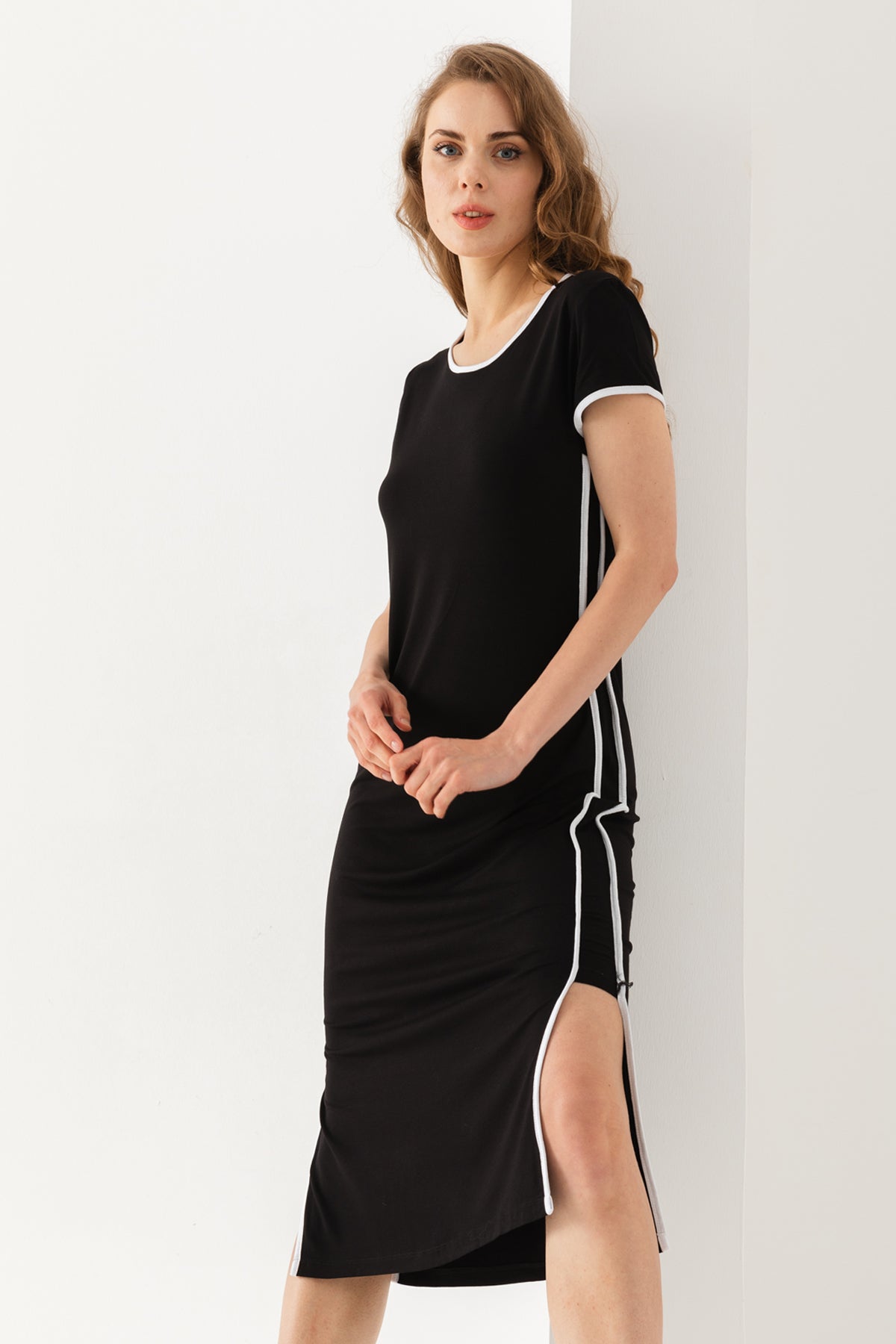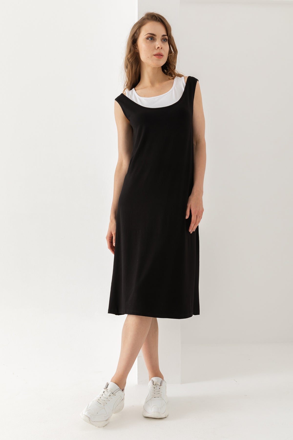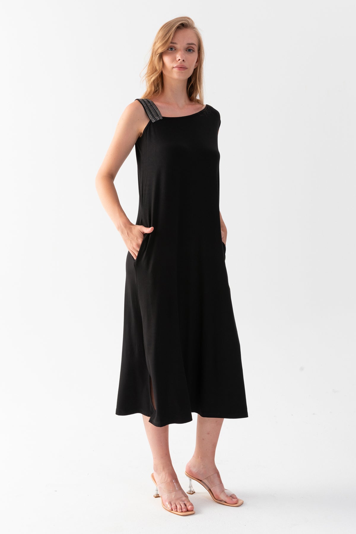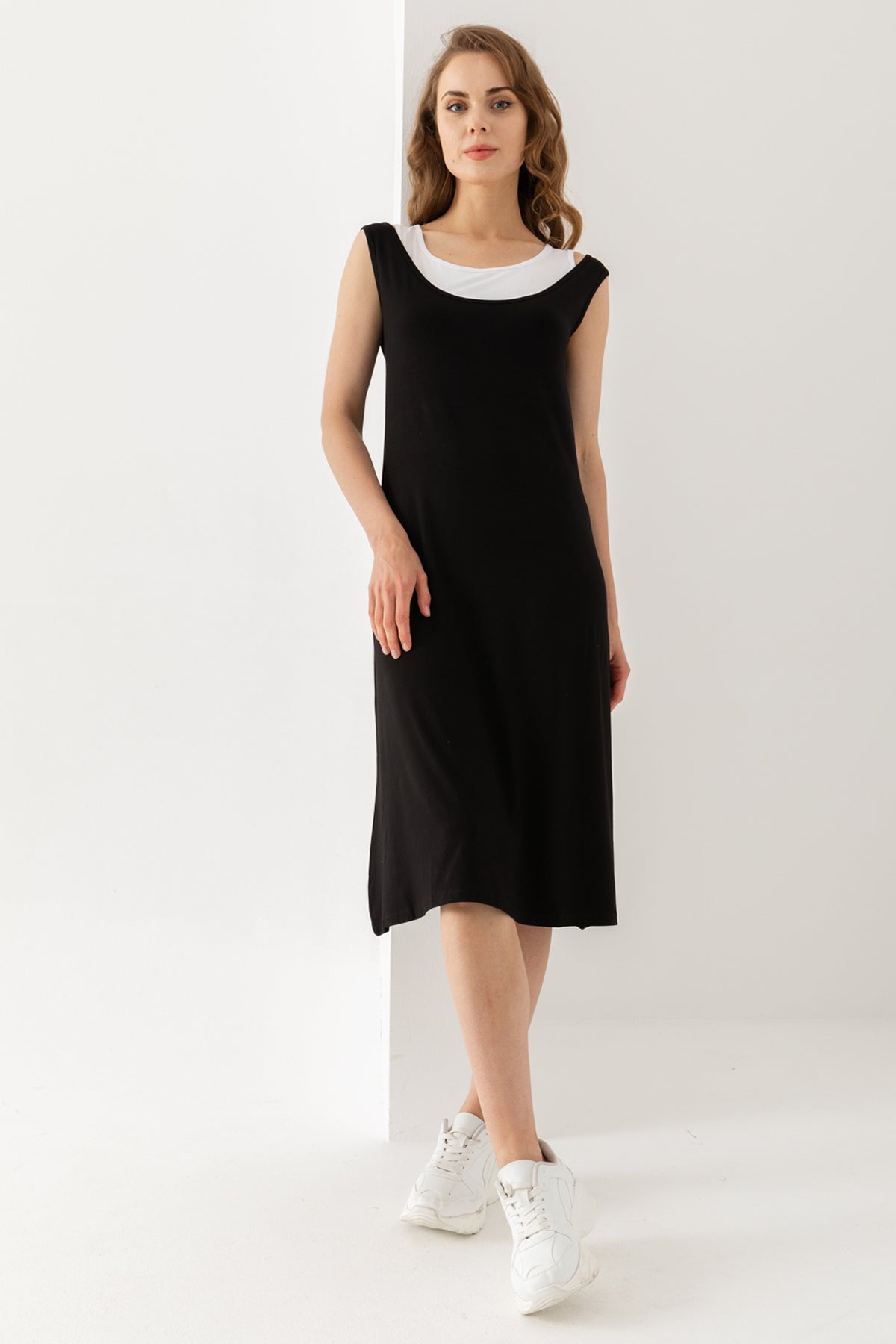 Kadın Siyah Bebe Kol Viskon Penye Şalvar Elbise