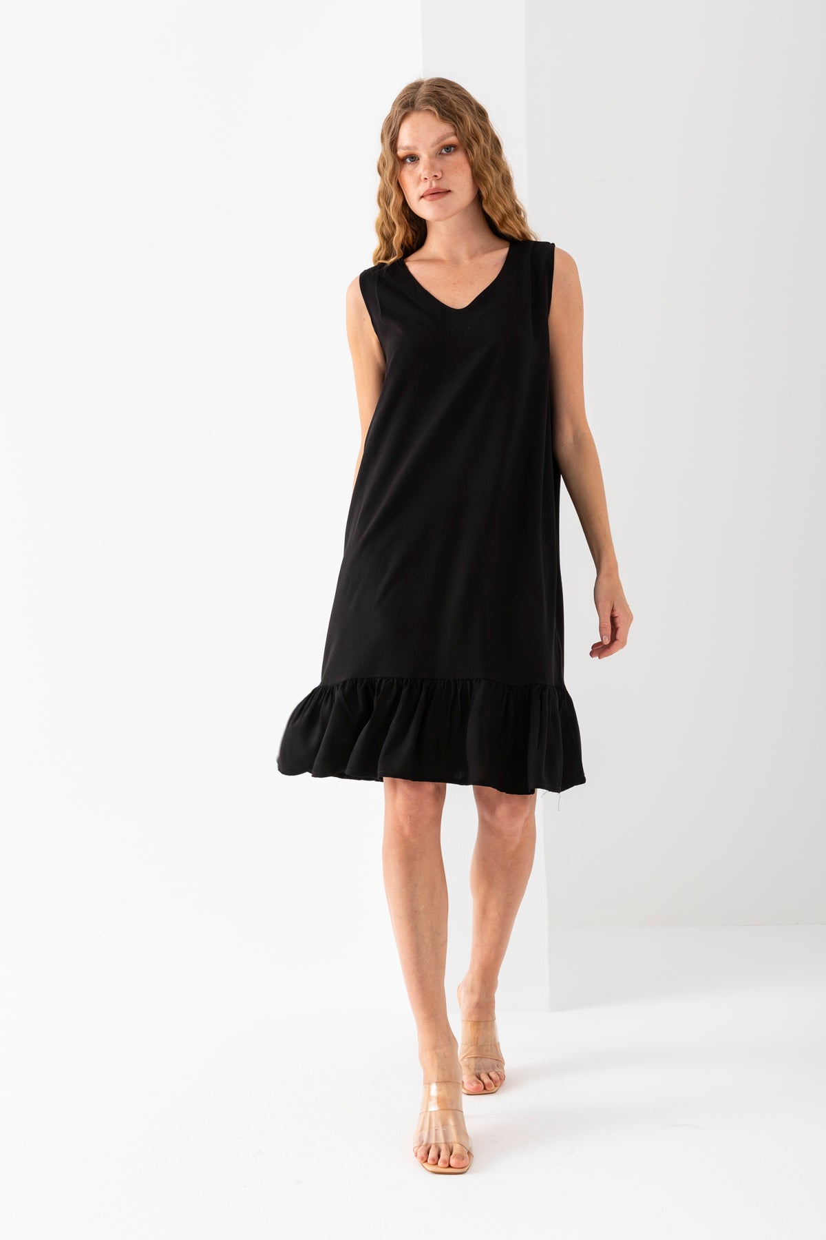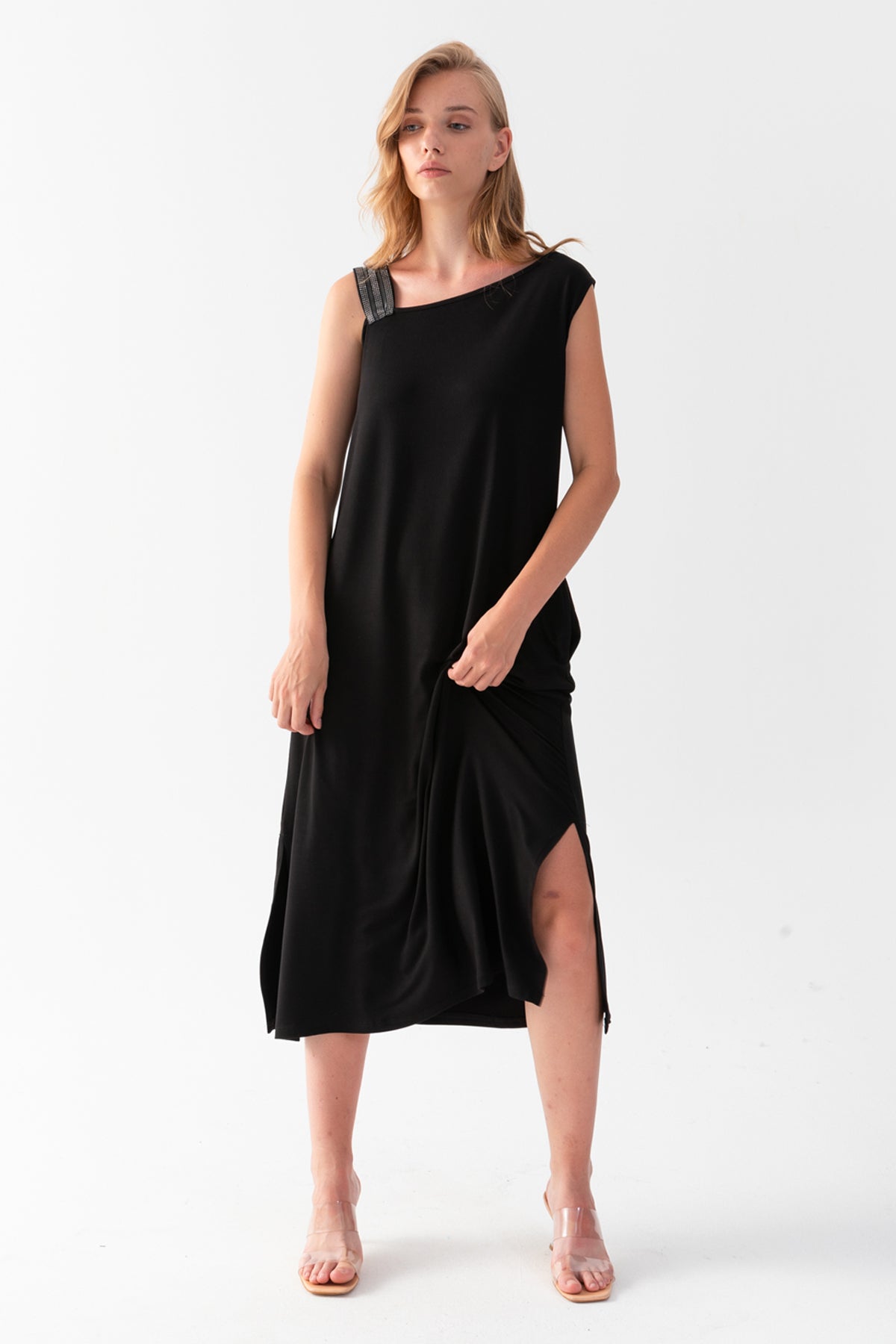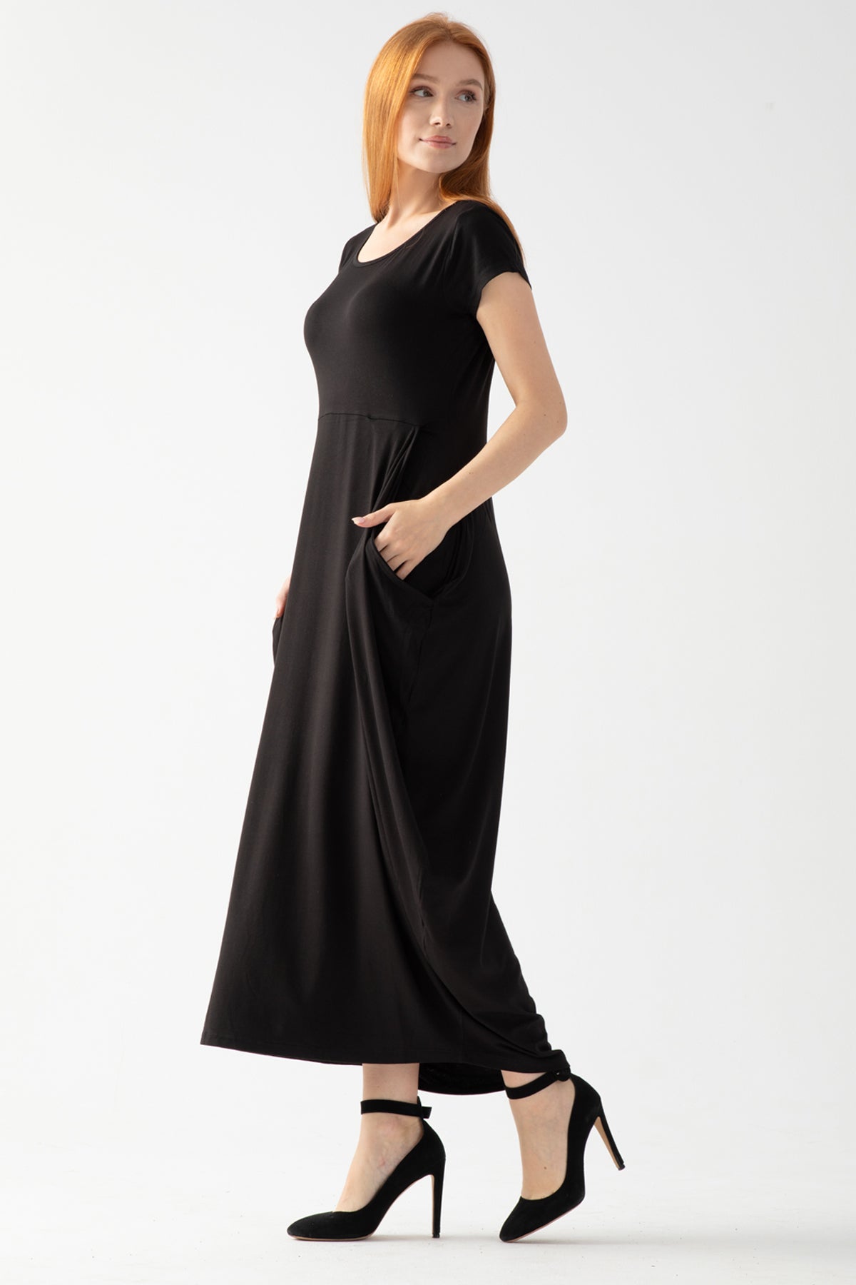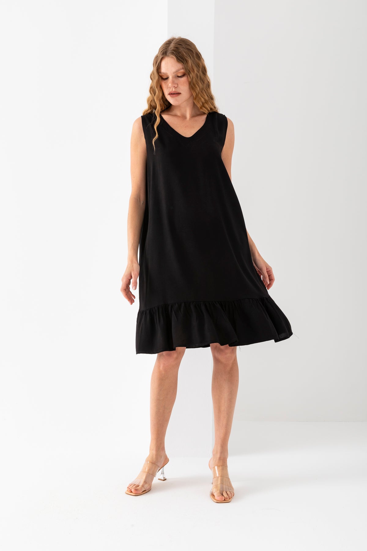 Kadın Siyah Bebe Kol Viskon Penye Şalvar Elbise