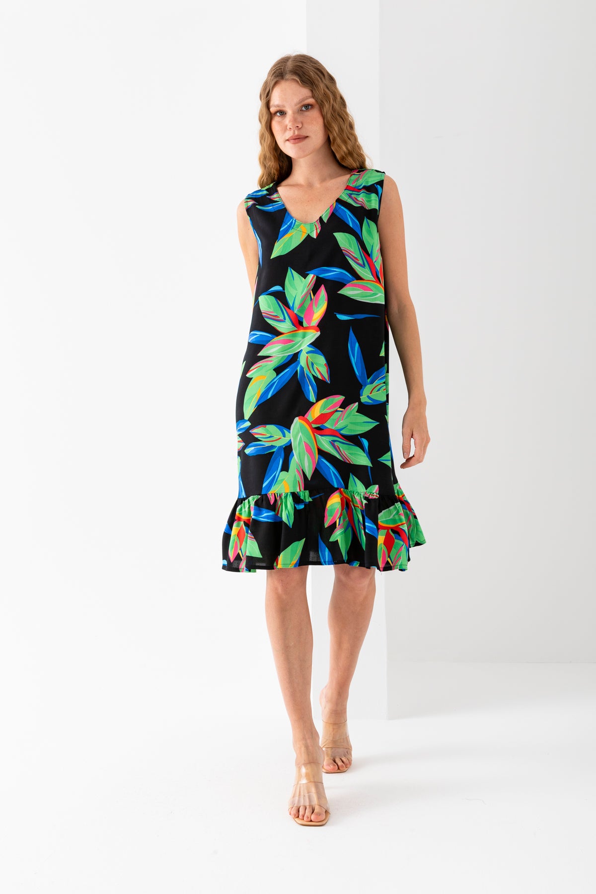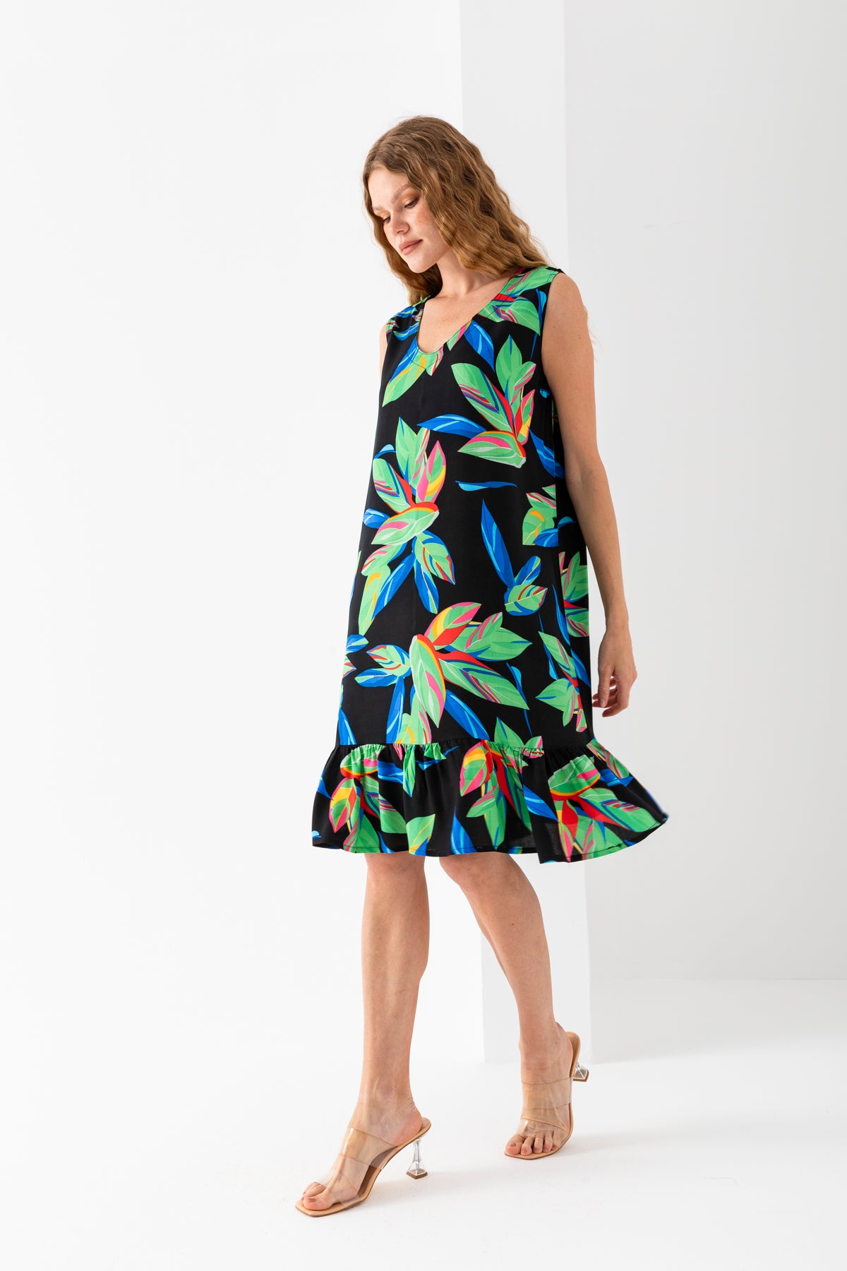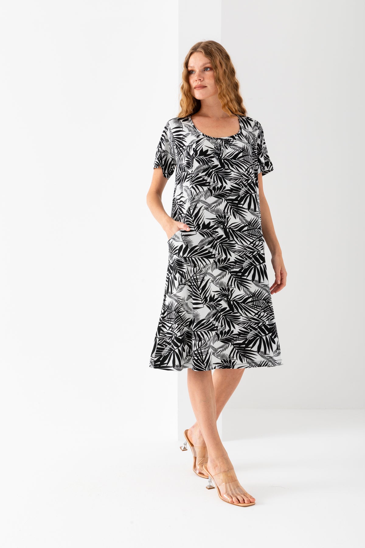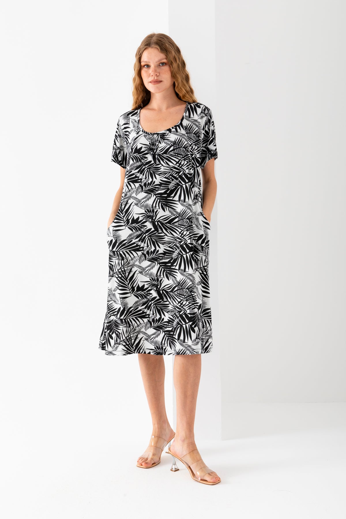 Kadın Siyah Bebe Kol Viskon Penye Şalvar Elbise
