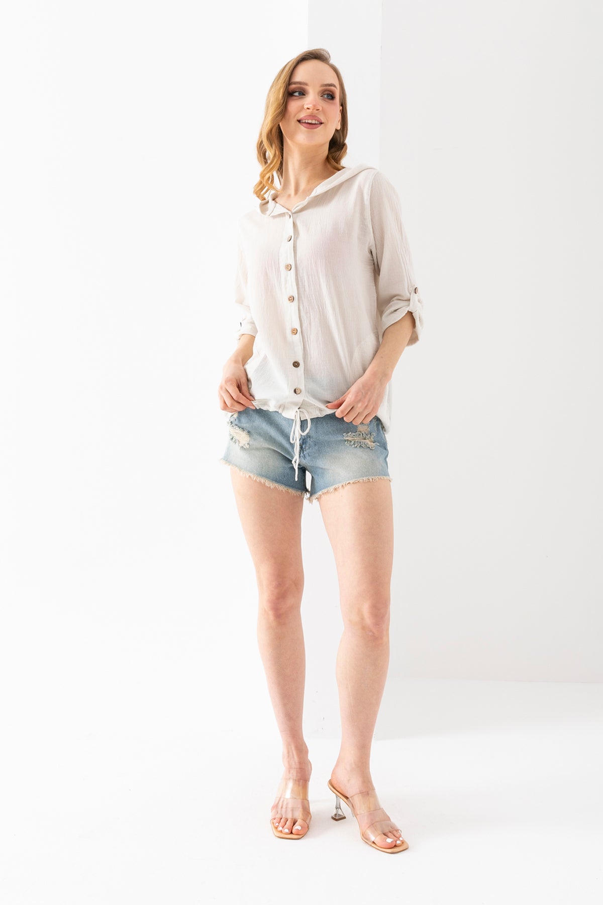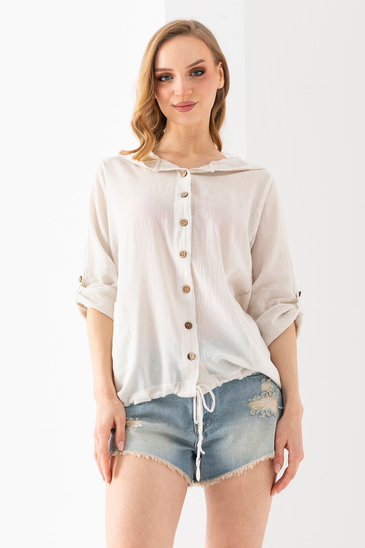Kadın Uzun Kollu Kopüşonlu Astarsız Peluş Ceket