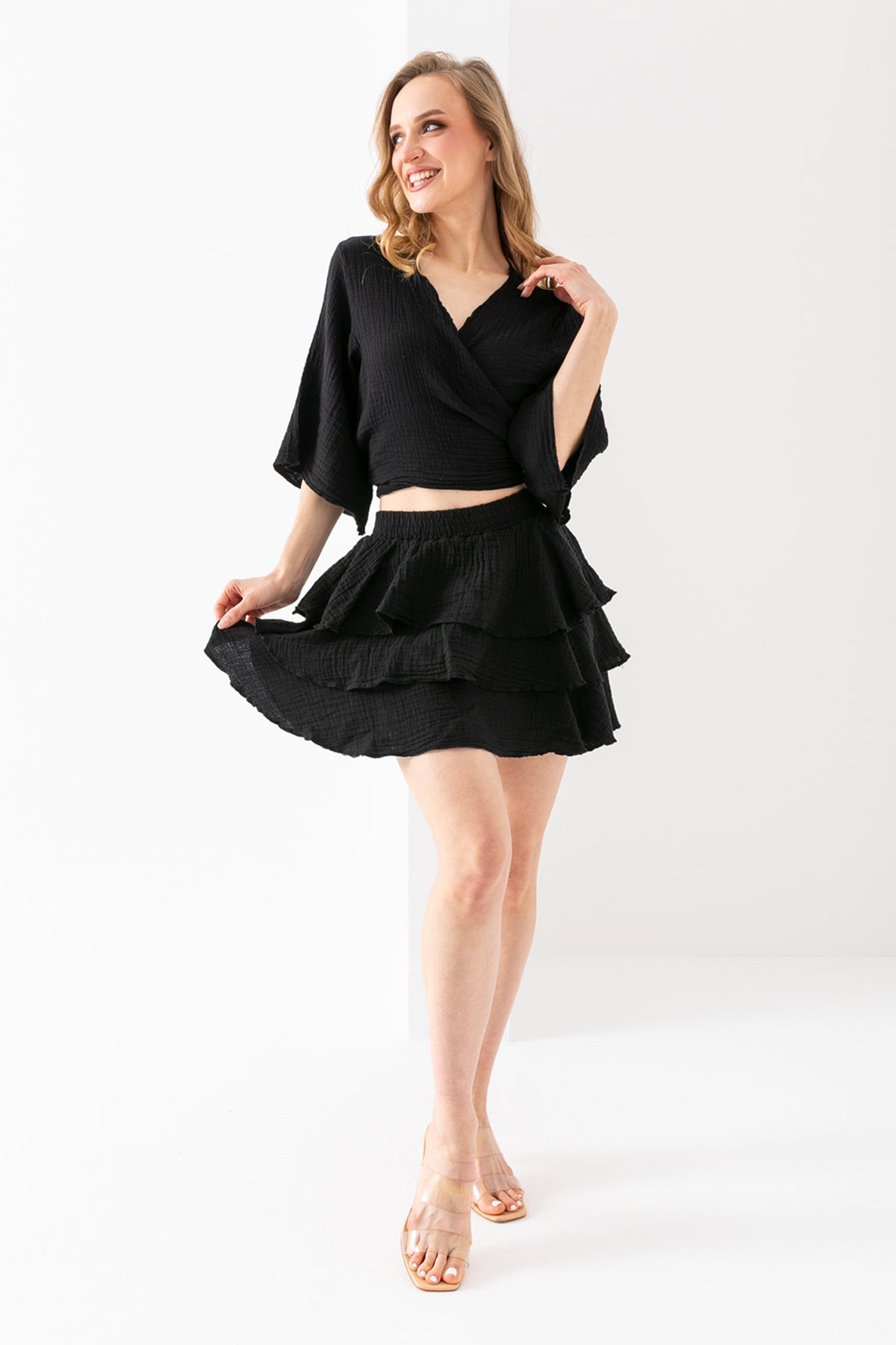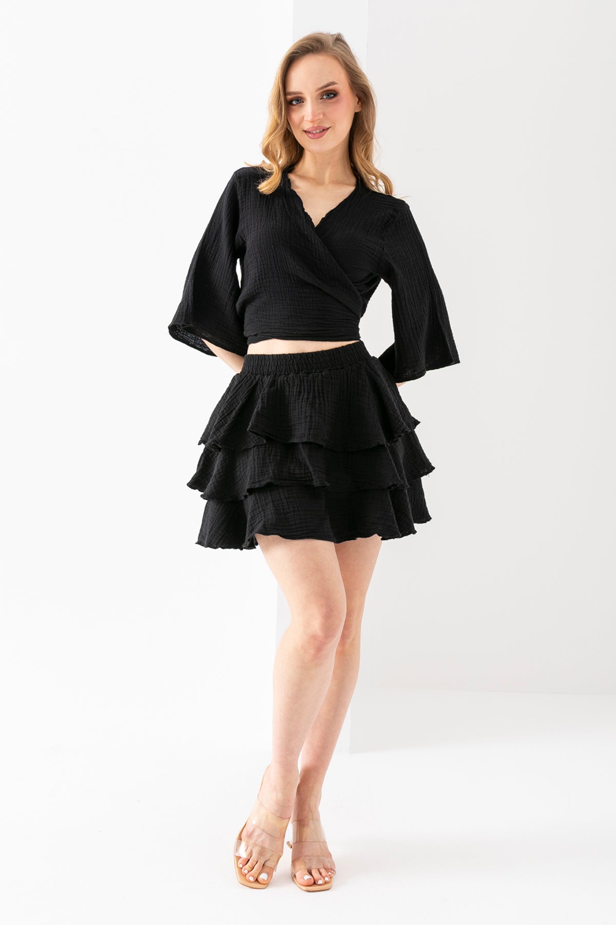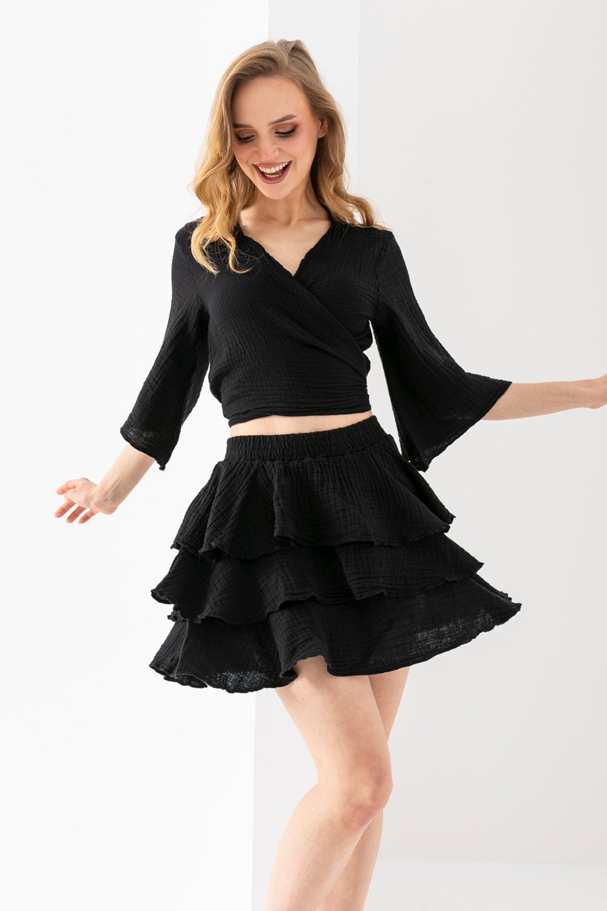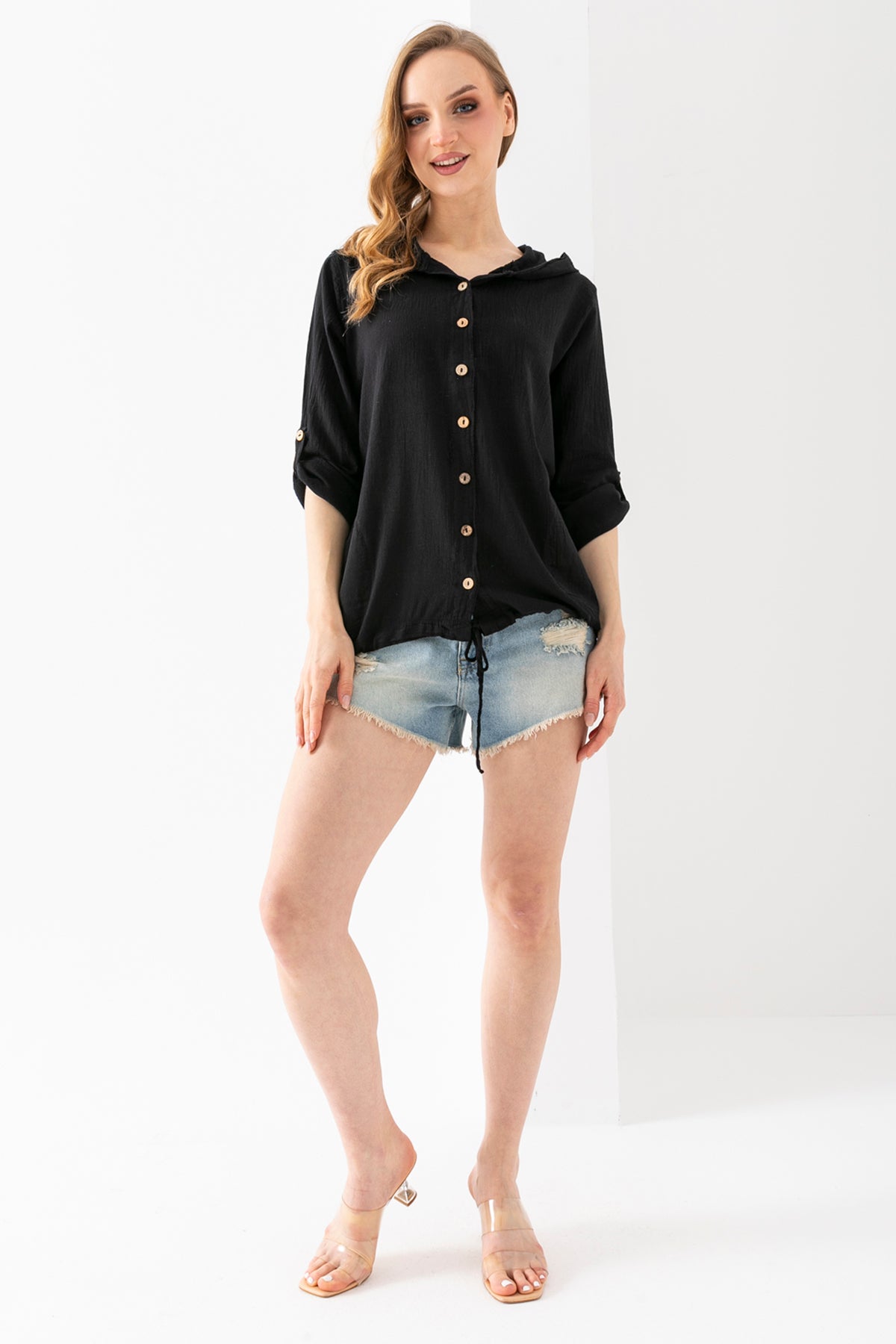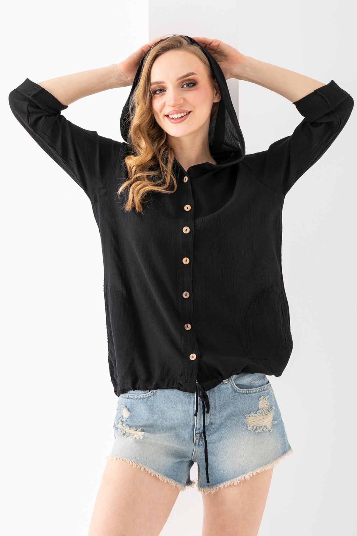 Kadın Siyah Uzun Kollu Kopüşonlu Peluş Ceket