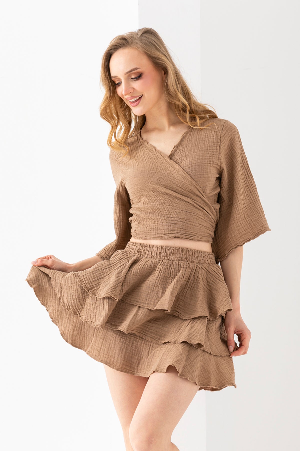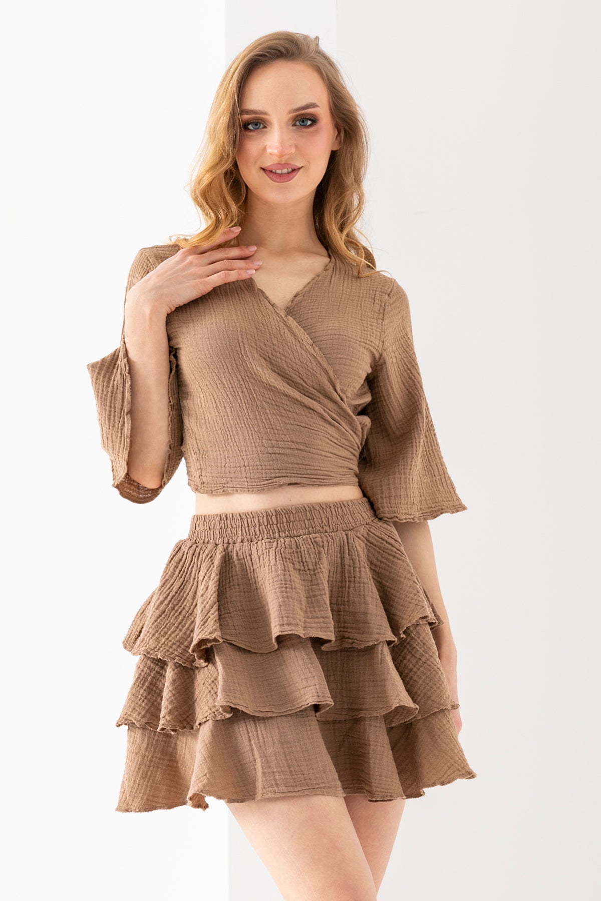 Kadın Kahverengi Kapşonlu Kolsuz Peluş Yelek