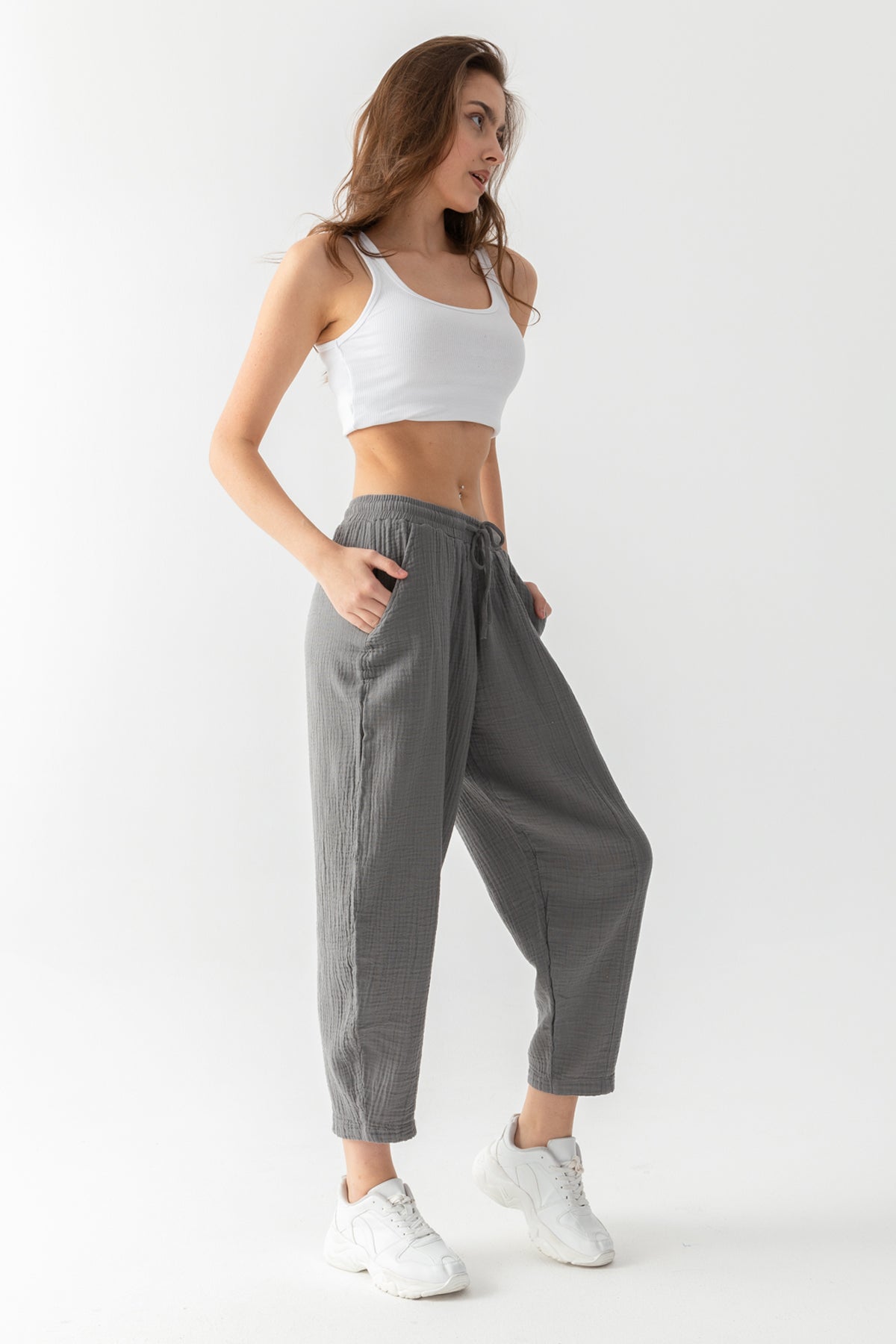 Kadın Kırçıllı Gri Kapüşonlu Peluş Ceket