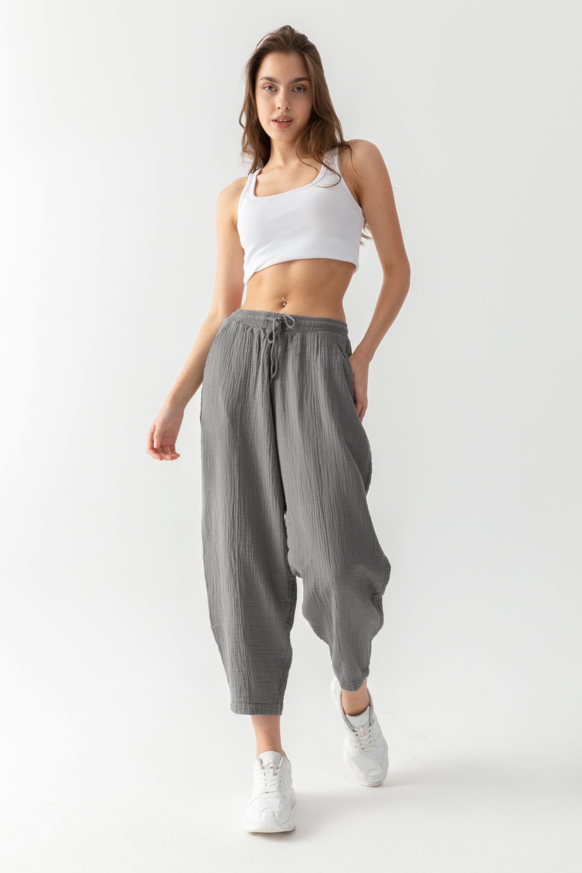 Kadın Gri Uzun Kollu Kopüşonlu Peluş Ceket
