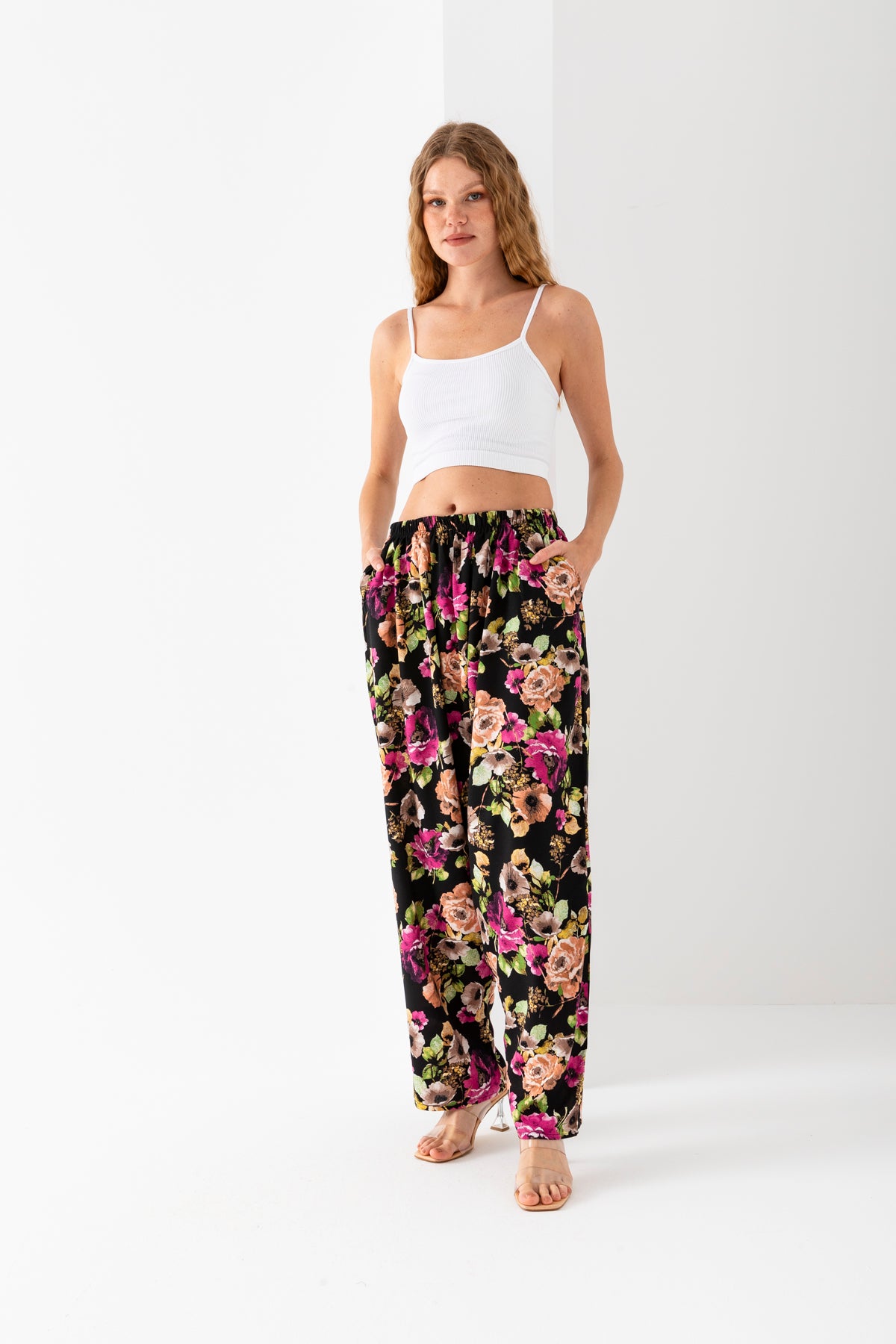 Kadın %100 Pamuk Siyah Geniş Paça Muslin Pantolon