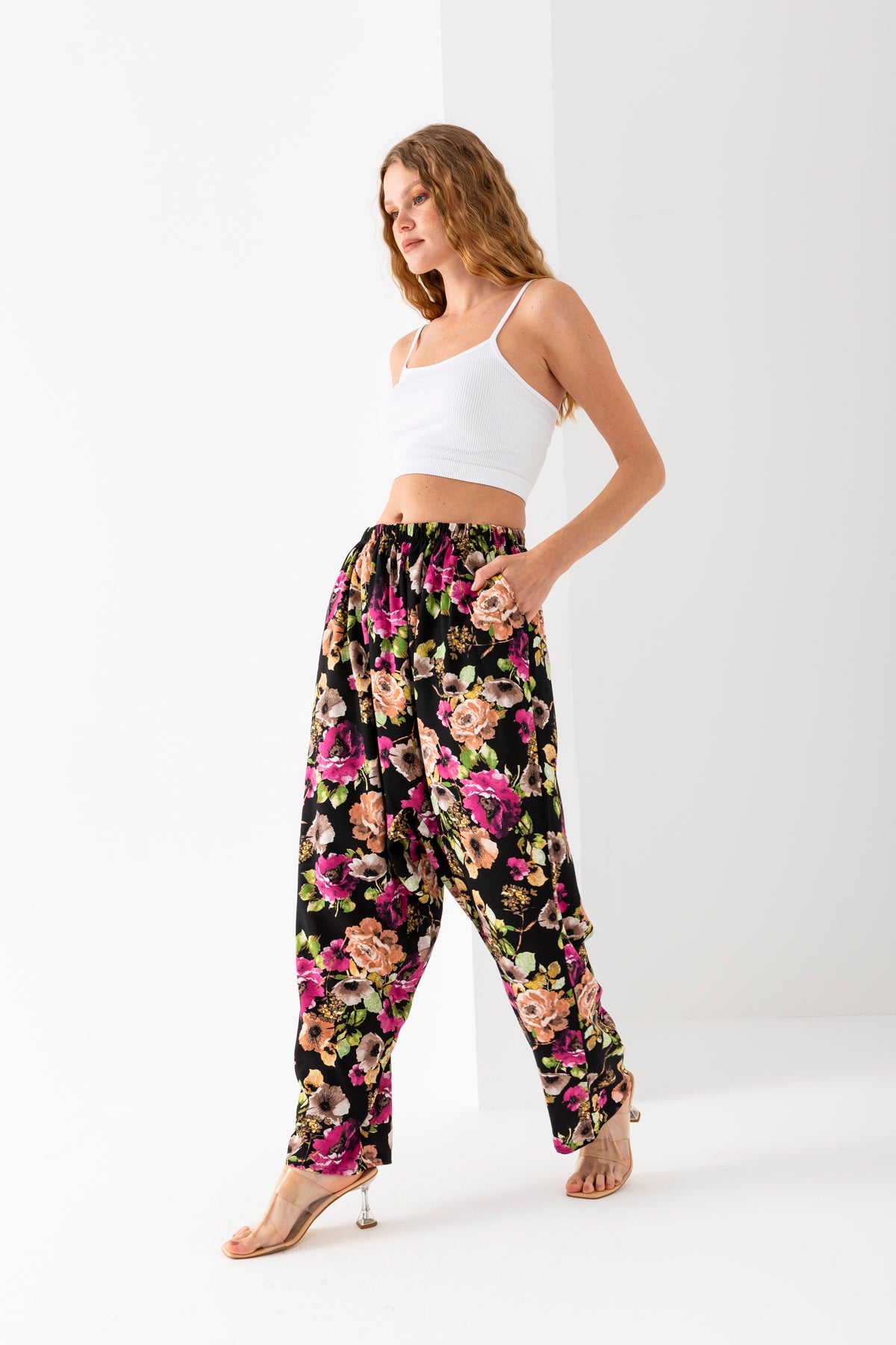 Kadın Fuşya Geleneksel Eski Tip Standar Beden Viskon Şalvar
