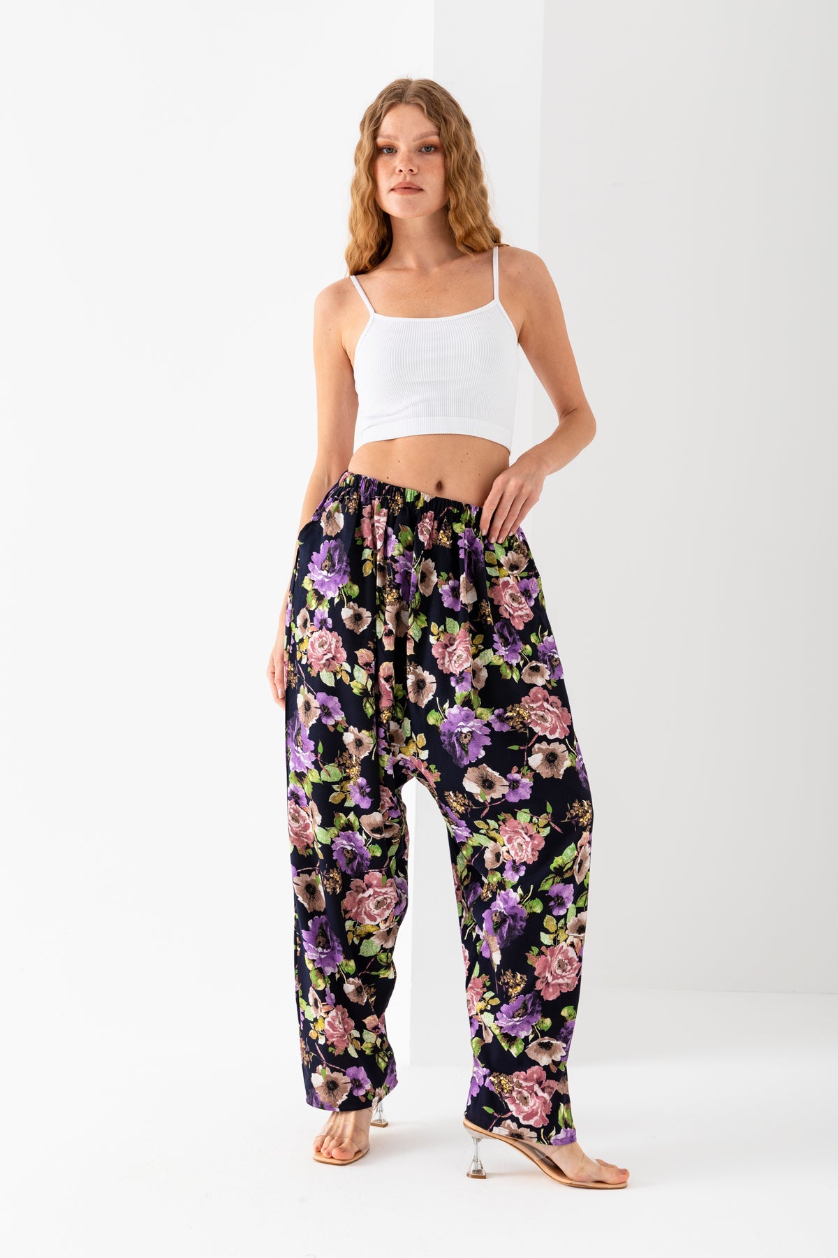 Kadın Mor Gül Kurusu Geleneksel Eski Tip Standar Beden Viskon Şalvar