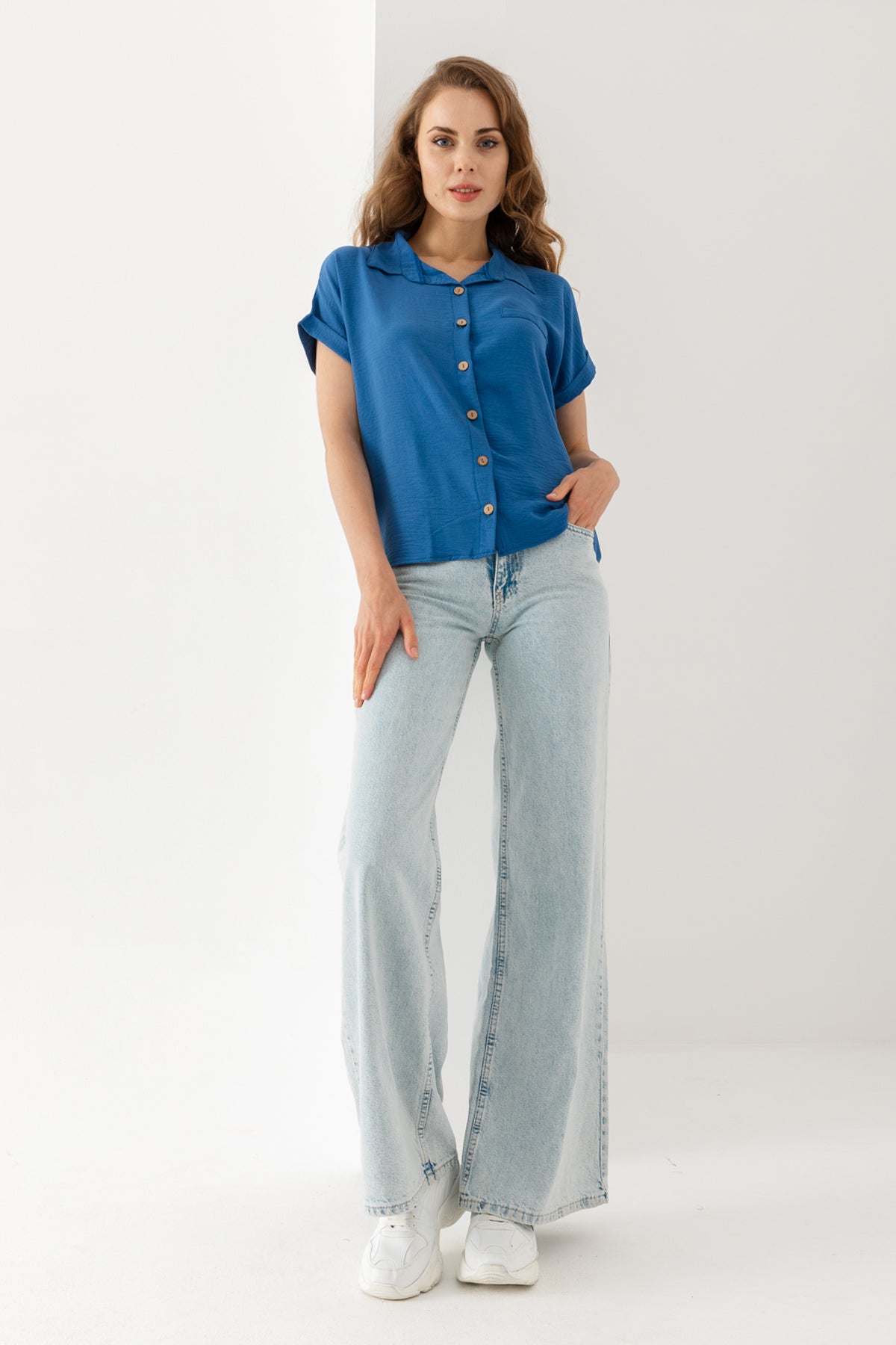 Kadın Mavi Duble Kol Aerobin Kısa Kollu Gömlek