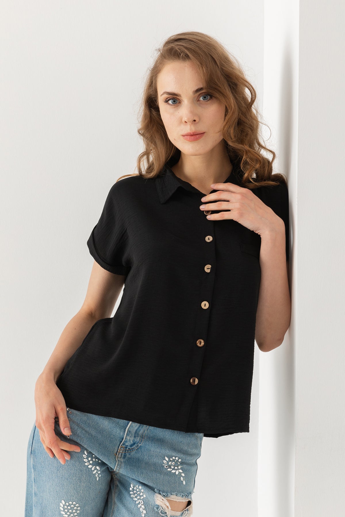 Kadın Siyah Duble Kol Aerobin Kısa Kollu Gömlek