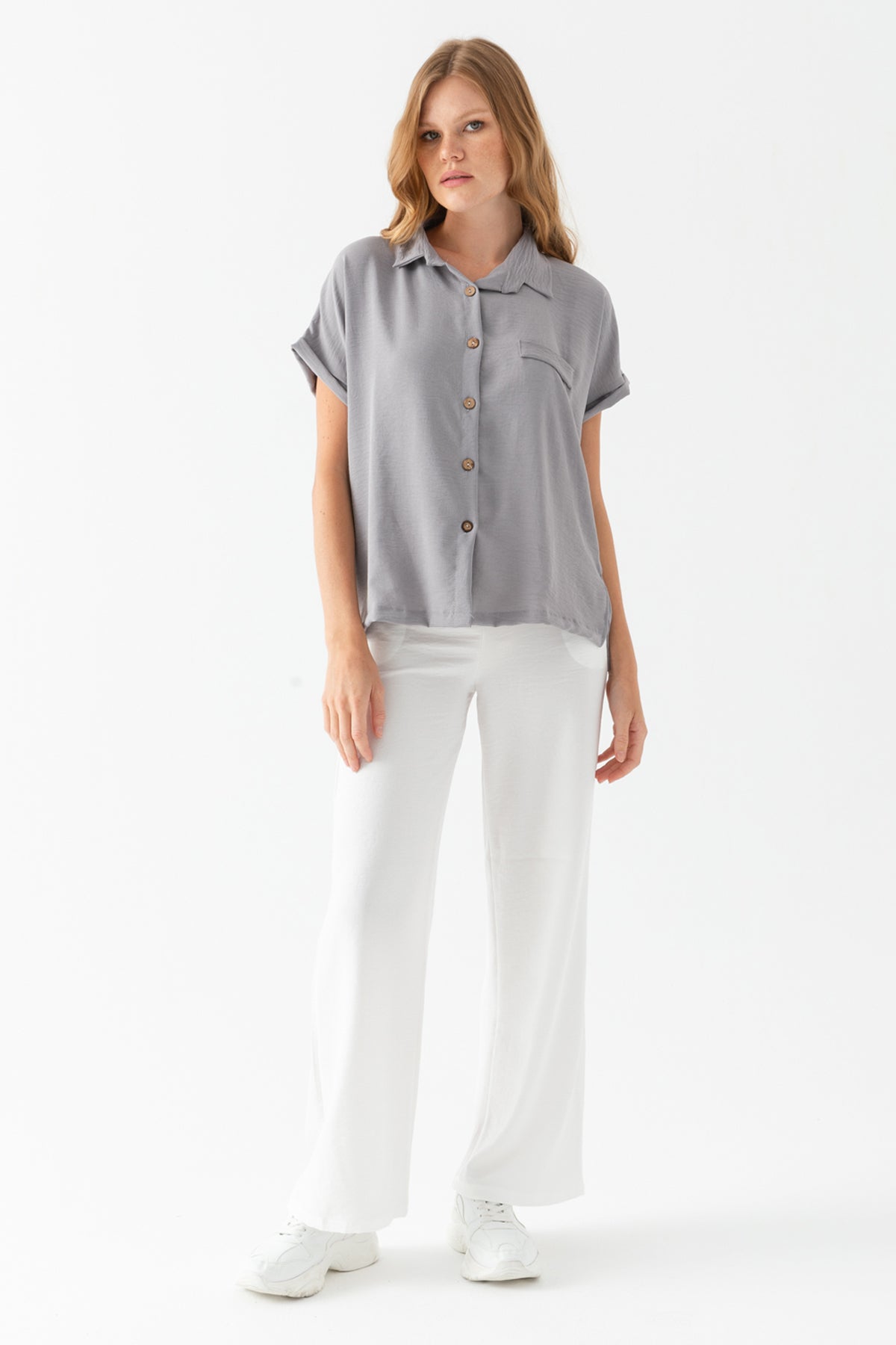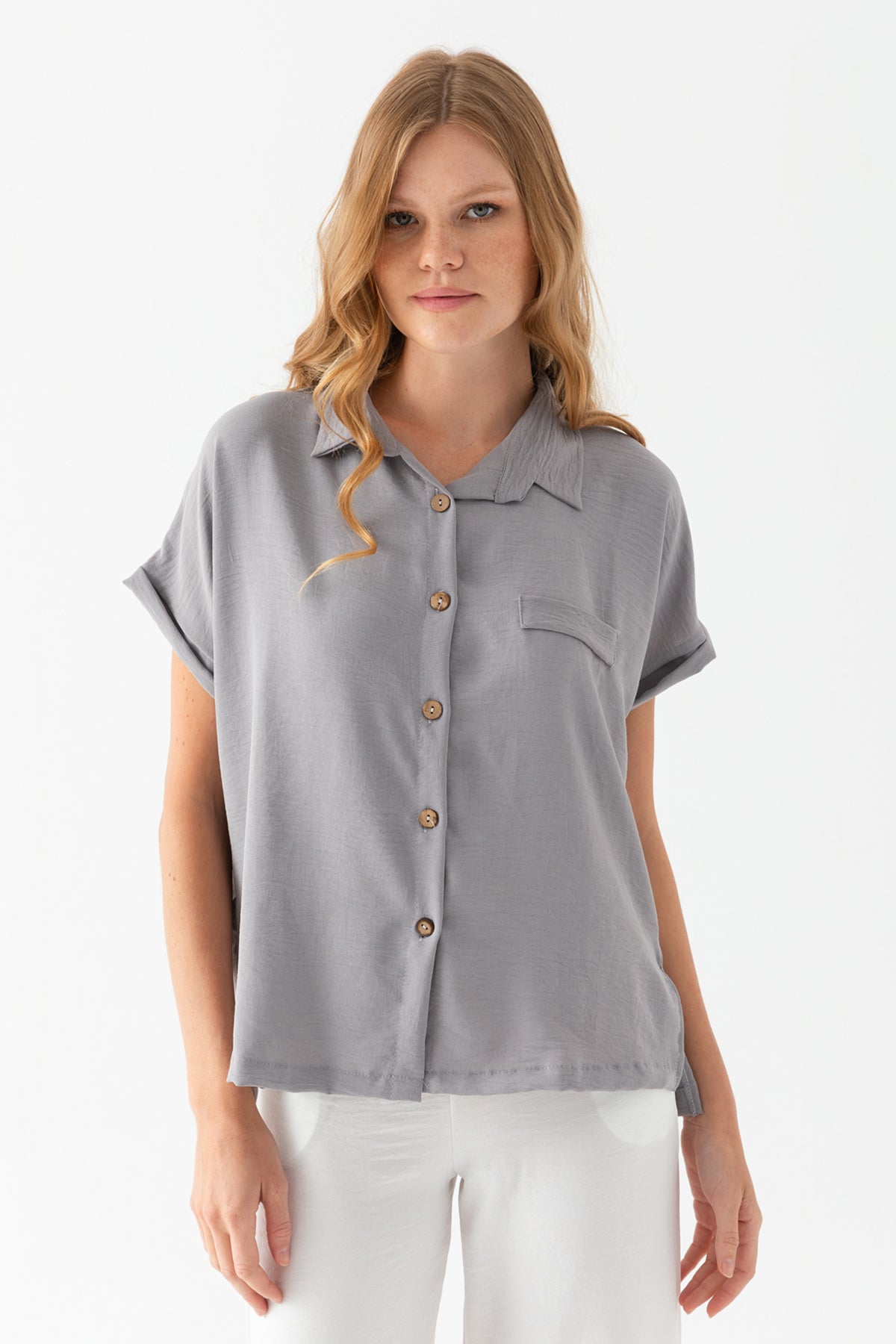 Kadın Gri Duble Kol Aerobin Kısa Kollu Gömlek