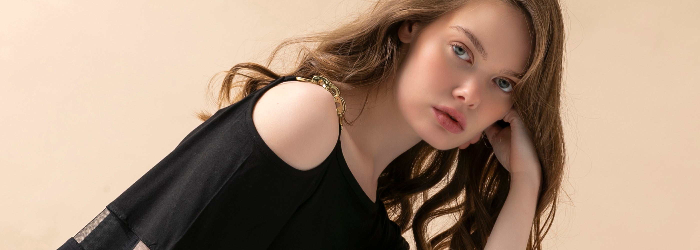 Kadın Siyah Önü Deri Detaylı Bisiklet Yaka Bluz